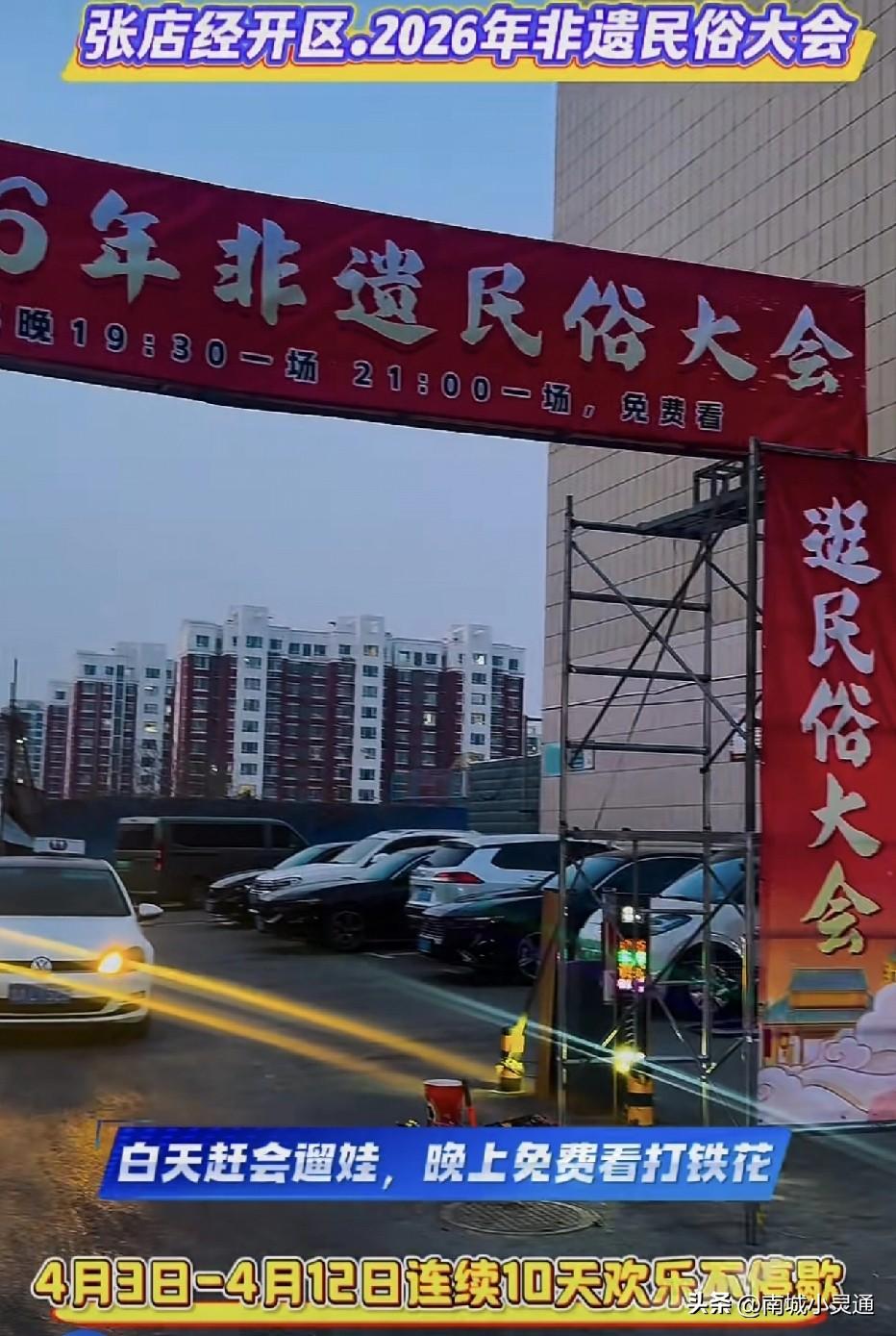 淄博经开区南苑绿洲这个位置要举行非遗民俗大会了。精彩节目不断!时间定在4月3号到12号!到时候欢迎大家来观看。 白天这里有活动,晚上19.30一场打铁花表演,21点还有一场!全部免费观看。 周围的小伙伴们,有时间的可以来看看啊! 具体位置在经开区傅家镇南苑绿洲小区东门往西约30米路北! 也可以从南苑绿洲小区西门进来往东直行,到东门附近路北就看到了! 欢迎大家来玩!!! [大笑][大笑][祈祷]