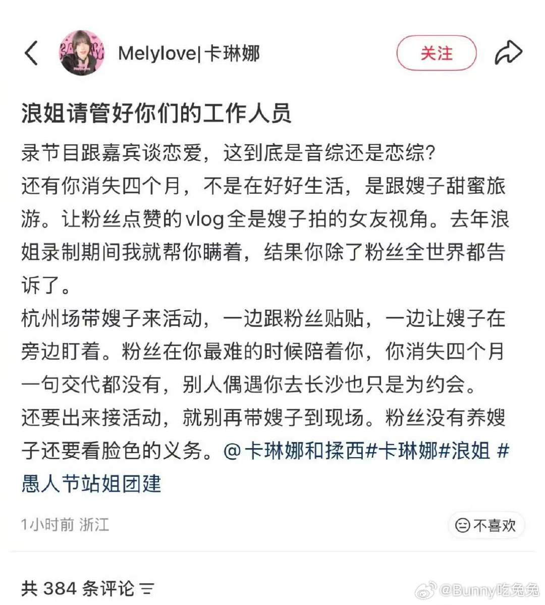 站姐曝卡琳娜和浪姐工作人员谈恋爱站姐曝卡琳娜和浪姐工作人员恋情站姐曝卡琳娜和浪姐