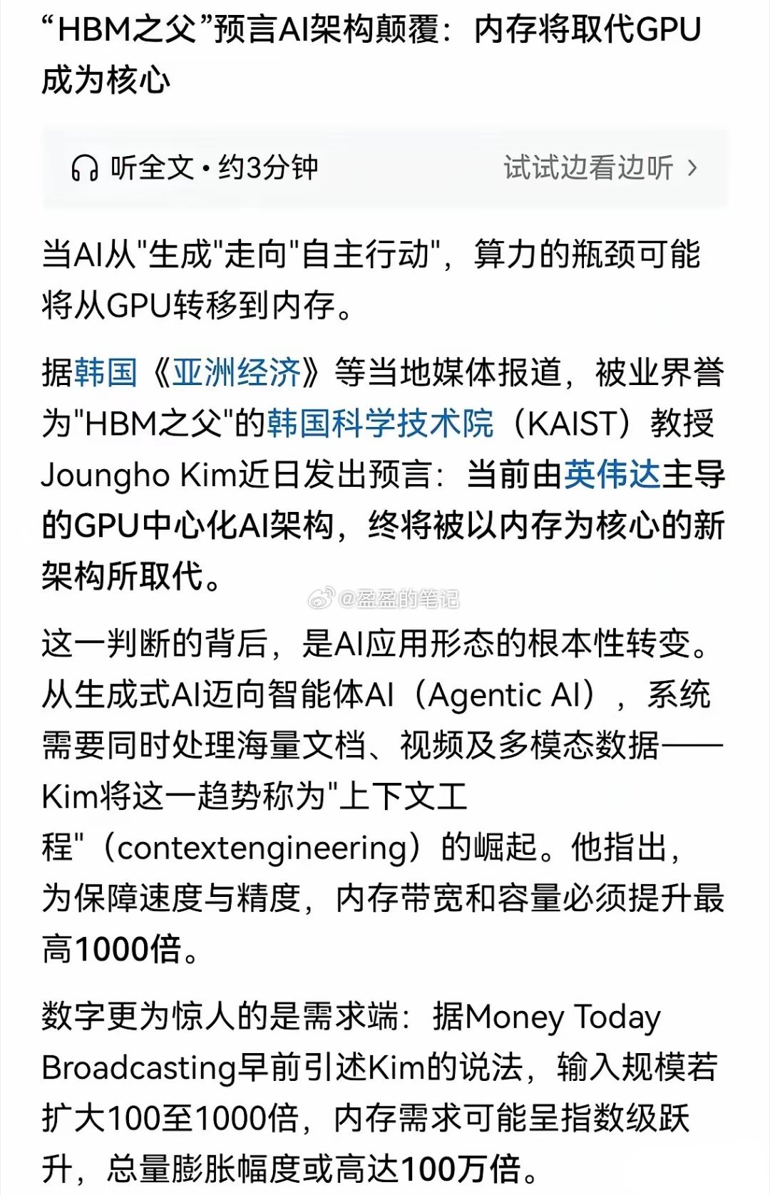 内存将迎来历史性变革!算力即国力,存力即算力,内存将取代GPU,未来内存需求可能高达100万倍!直接受益的龙头公司:第一梯队为内存接口和SPD芯片:1、澜起科技,内存接口芯片世界第一!2、聚辰股份,内存SPD芯片世界第二,中国第一!第二梯队为存储芯片设计:1、兆易创新,DRAM+NORFlash龙头!2、北京君正,DRAM+Flash龙头!第三梯队为存储模组组装:1、江波龙,模组组装龙头!2、佰维,模组组装龙头!