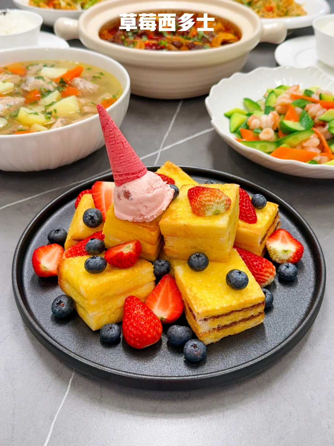 ❷【草莓西多士】