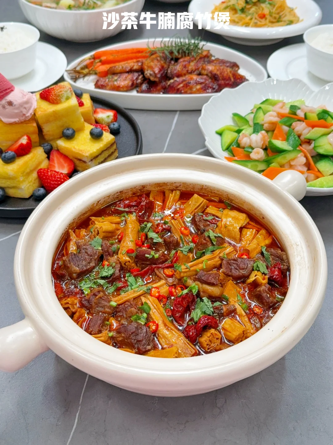 ❸【沙茶牛腩腐竹煲】