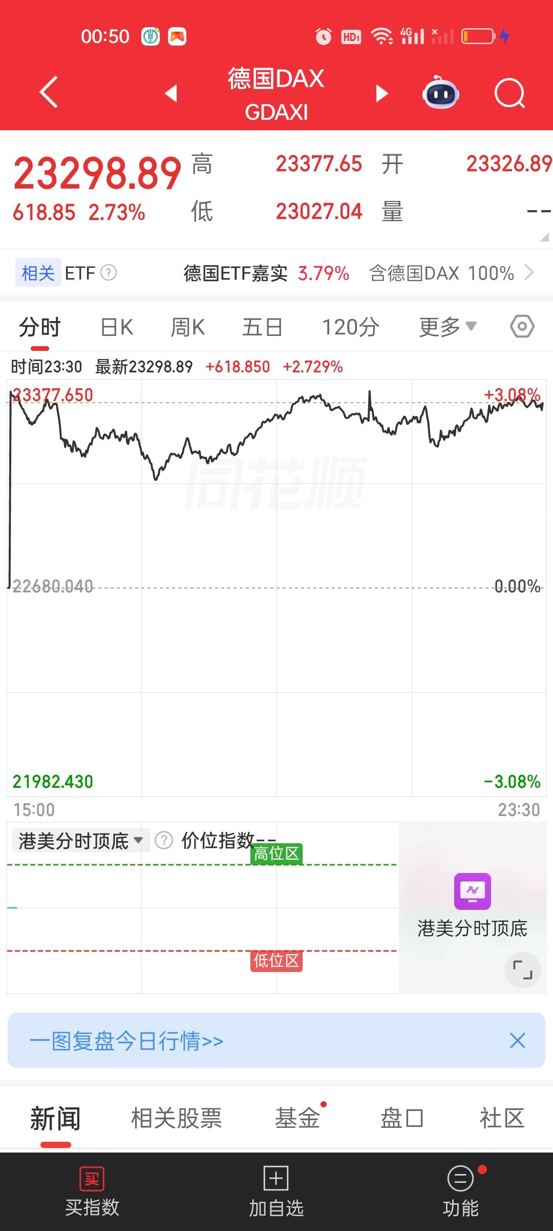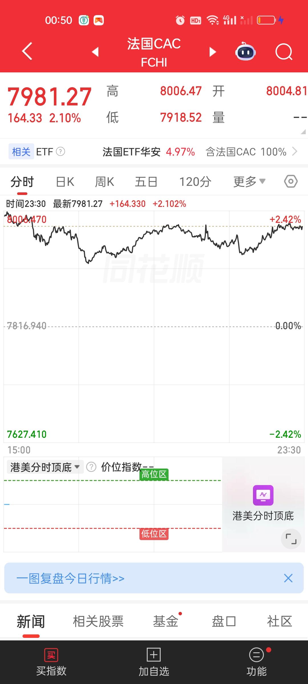 美股当前的涨幅还是相当不错的。三大指数全部收涨,欧洲主要股市收盘也是全部收红。港股期指,日经,富时A50也都是红的,人民币还在升值,一切都在向好的方向发展。如果上涨状态能一直延续到收盘,那明天的行情依旧值得期待。
