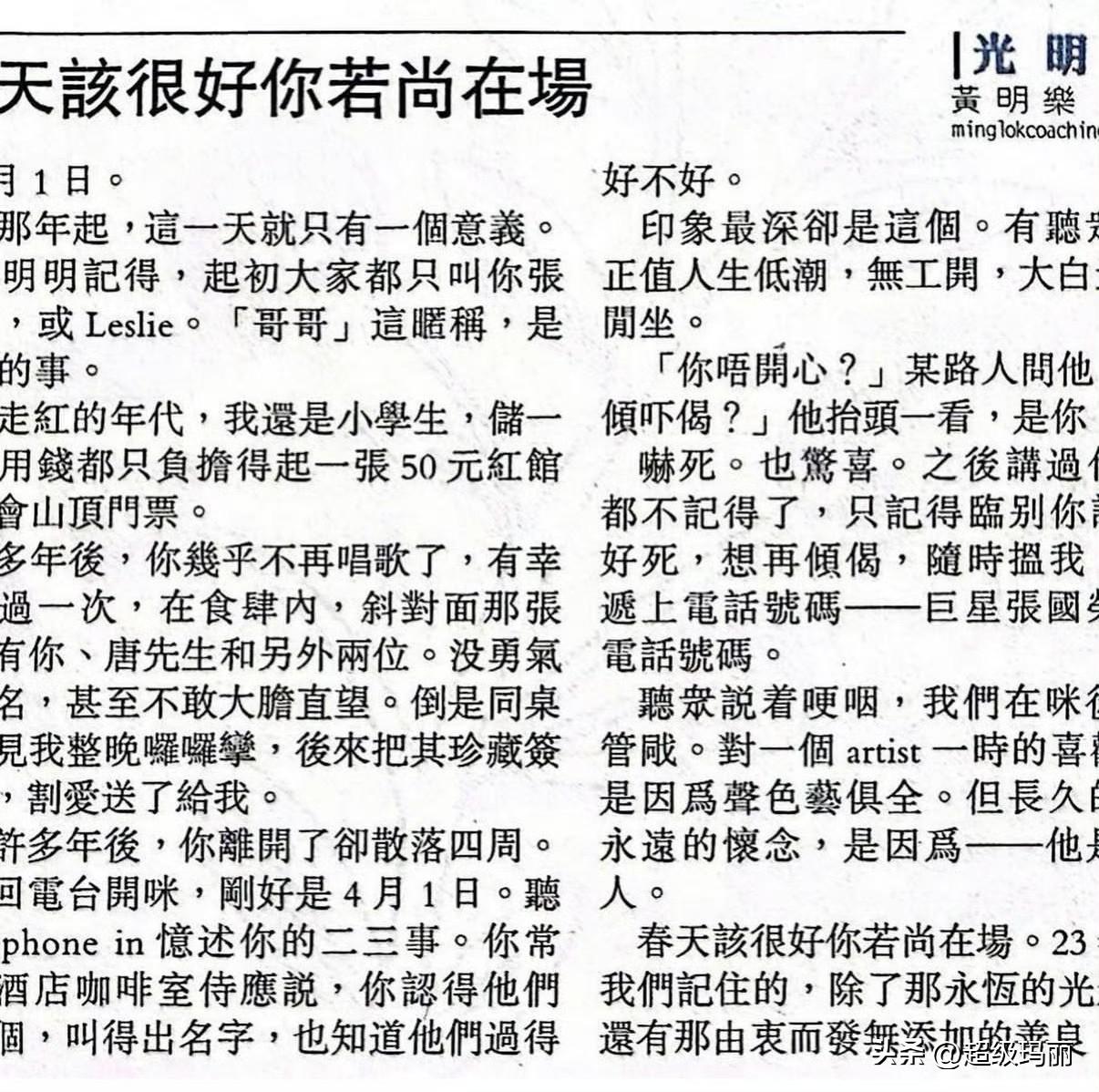 唐鹤德在社交平台发文怀念张国荣 :情懐如昨天🌹