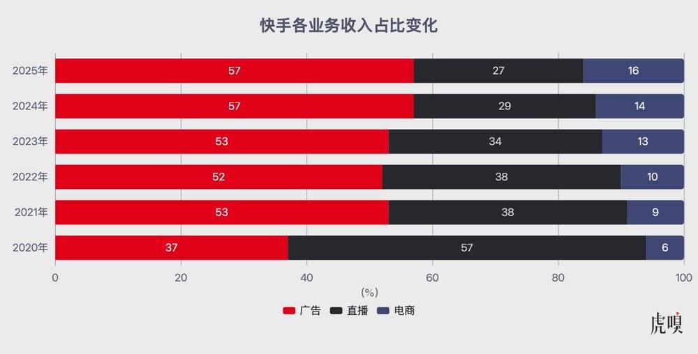 作为流量驱动型平台,快手广告、电商、直播三大变现业务的根基,是用户规模与使用时长;而2025年,快手的流量红利已摸到天花板,增长引擎“近乎熄火”。