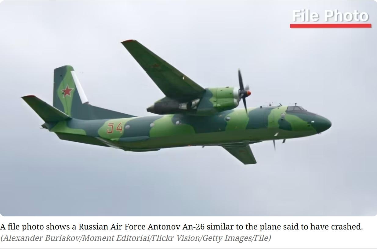 俄罗斯一架军用运输机坠毁,29人死亡 俄罗斯国防部周三凌晨称,一架俄罗斯An-26军用运输机计划飞越克里米亚时,通信中断,最后撞上悬崖,机上29人遇难。 国防部报告称,一支搜救队找到了灾难现场,根据现场报告,机上6名机组人员和23名乘客遇难。飞机没有受到撞击,坠机原因初步判断是技术故障。 An-26运输机自20世纪60年代末开始服役,也被航空公司用于货运,但在过去十年中,该型号曾多次发生致命坠机事故。 2022年,一架乌克兰An-26在乌克兰东南部扎波罗热地区进行技术飞行时坠毁,造成一人死亡。2020年,另一架飞机在乌克兰东北部的一次训练飞行中坠毁,机上27人中除一人外全部遇难。 2020年,一架安-26在南苏丹坠毁,造成8人死亡,其中包括5名俄罗斯人。2017年,一架安-26在西非科特迪瓦着陆时坠毁,机上10人中有4人遇难。