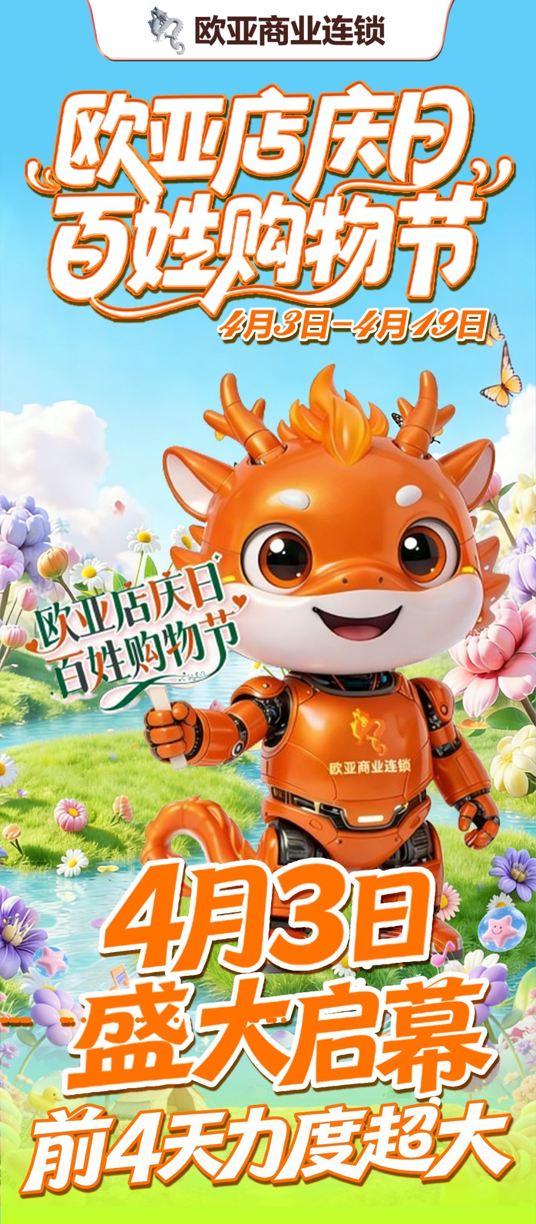 欧亚店庆日,百姓购物节!4月3日至19日,欧亚集团42周年庆。欧亚新生活\三环