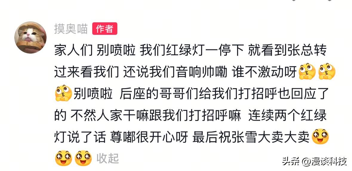 摩友重庆街头等红绿灯偶遇张雪,激动得不得了,张总还说车友的音响帅。 虽然摩友骑的车不是张雪品牌,但张总看到车友还是很高兴,拿出剪刀手打招呼。可以看出,张雪坐在汽车的副驾驶位置,他本来也不会开车,只能骑摩托,因为他至今还没有汽车驾照。[捂脸][笑哭]