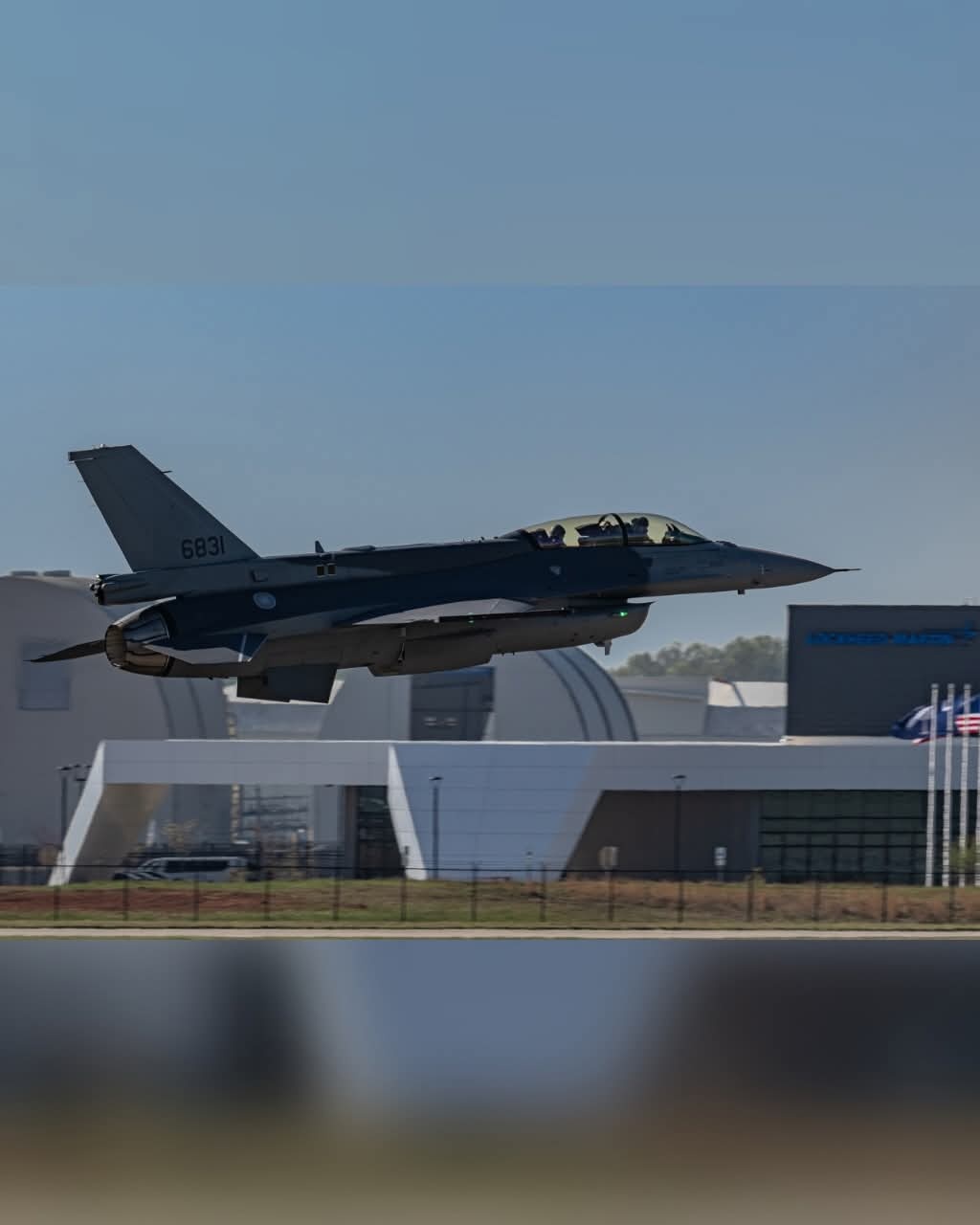 昨天有人拍到的中国台湾第一架F-16V/F-16D Block 70“蝰蛇”战斗机在美国洛克希德‧马丁南卡罗莱纳州工厂测试照片。