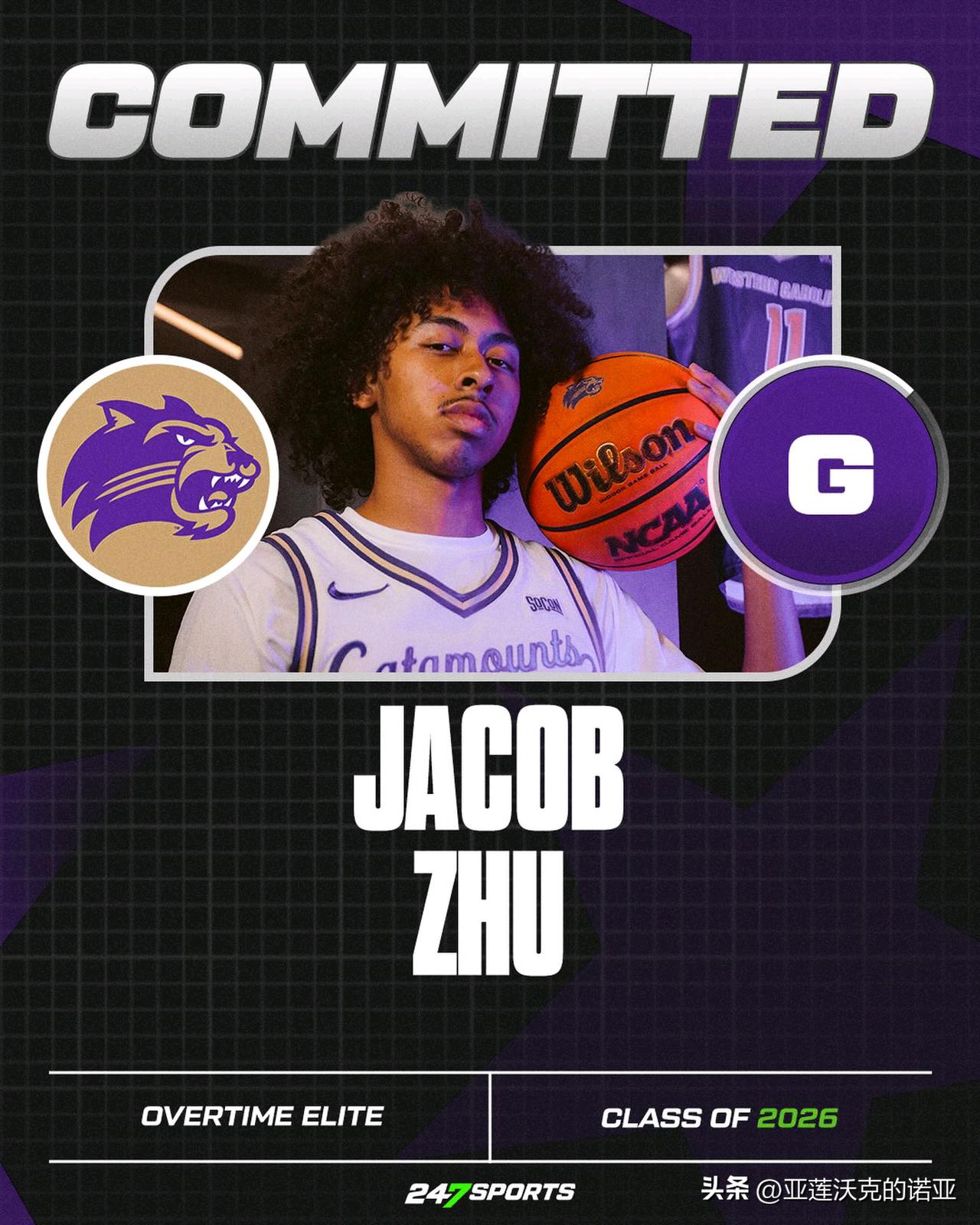 朱正Jacob Zhu宣布承诺加盟NCAA男篮 西卡罗来纳大学Western Carolina,还访问过佐治亚理工与Mercer,身高6-1=185,2026年征战OTE季后赛场均得到17.5分5助攻3.5篮板,经纪人是Stevan Petrovic,去年夏天代表中国参加U19男篮世界杯场均24.5分钟得到11.2分4.2助攻2.3篮板1.5抢断。