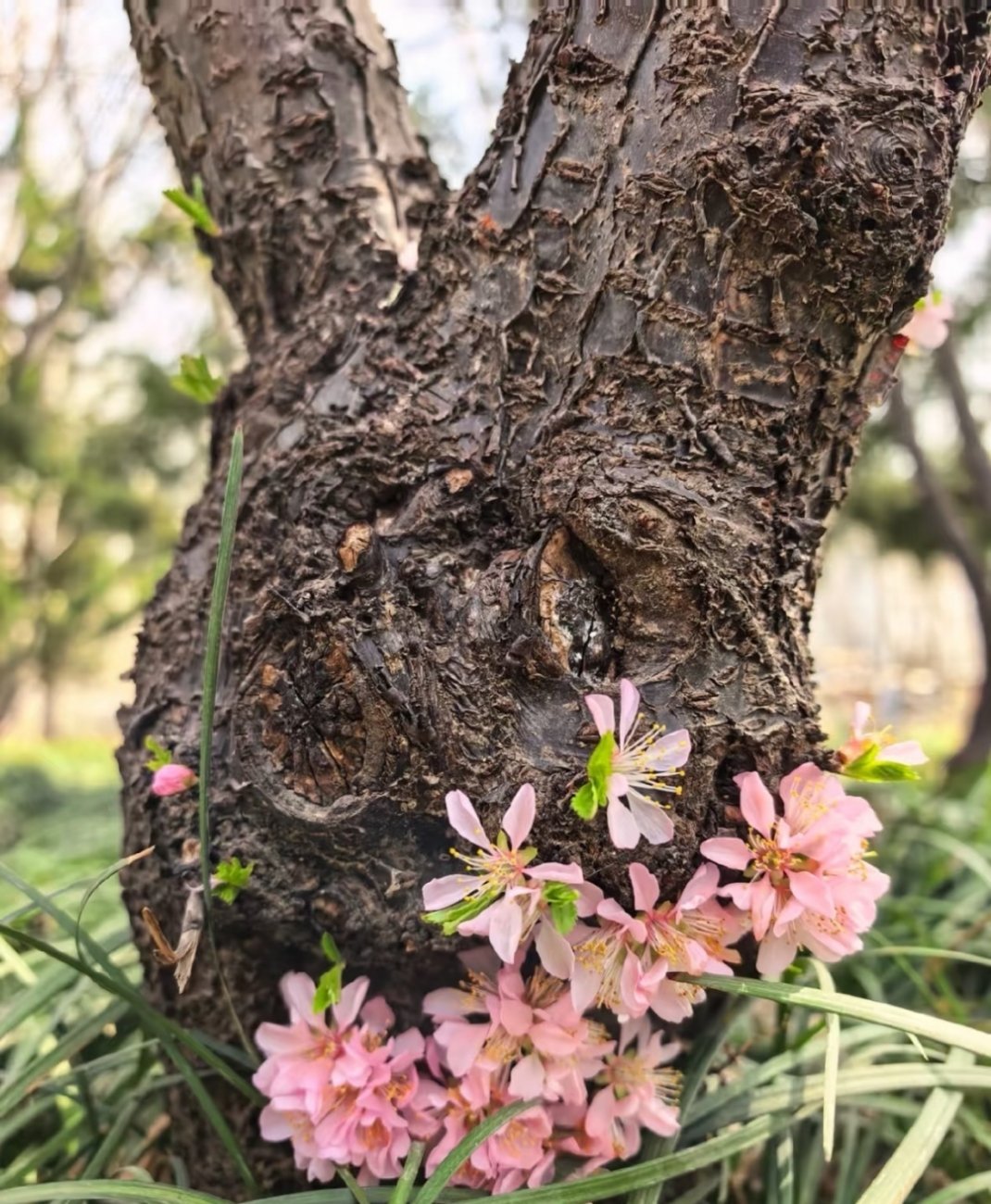 应激性开花说一个冷知识。一棵树受到巨大创伤,比如被砍伐过,树干就会“应激性开花”。