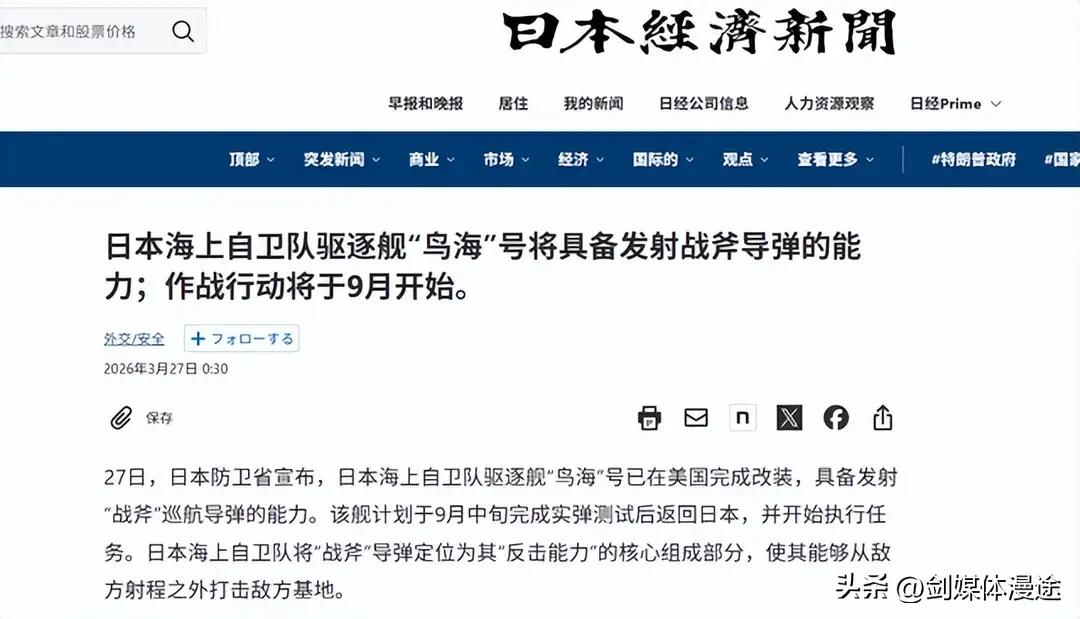 日本用“简单 粗暴”方式 部署1000公里导弹,并狂言:不接受任何指责!日本如此大胆公然违法 底气何来呢? 1:日 本防卫省在3月31日夜间 在媒体聚光灯面前 直接在日本九州的熊本部团1000公里射程12式反舰导弹,这种导弹的方向指向邻国 包括中国在内。 2:3月27日,日本海上自卫队“金刚”级驱逐舰“鸟海”号(DDG-176)在美国完成了其MK 41垂直发射系统(VLS)集成美制“战斧”导弹的软硬件适配,使其正式具备了1800公里级“战斧”巡航导弹的使用能力! 3:3月30日解放军报对外公布日本拥核材料数据,目前日本已囤积44.4吨分离钚,足以制造5500枚核弹头。 从日本1945年战败之后,日本军国主义根本就没有停歇,而打着“专守防卫”的旗号,举着“自卫队”的幌子,背后干了这么大的事情。手上拥核材料,对于日本制成核武器 仅差几个月的时间(6个月),为此有了这些核原料,日本的底气十足。 而右翼为代表的高市上台之后,就如打开了日本军国主义大门,成为军国主义鬼魂的 旗帜。如今日本政府想如何部署 武器 想如何突破和平宪法都为所欲为,日方打着“防卫反击”的幌子部署进攻性武器,远远超出“自卫”和“专守防卫”的范畴,严重违背《开罗宣言》《波茨坦公告》《日本投降》。而日本政府视这些法律为摆设,根本毫无在义。这就是当下的日本。 而日本在这个世界上只听从美国的话,而对于世界任何国家的言论也视为“空气”。日本已经回不去了,重走军国主义之路,也必将给世界带来更多的威胁。 从目前来看,全世界除了中国 俄罗斯 朝鲜 韩国 高度关注日本军力发展趋势之外,其它国家均视而不见,并没有谴责,而美国正在背后鼓动日本这么干。日本正在松脱缰绳,走上“侵略之路”。 但日本真的能走得通吗?先问问14亿中国人民,这个仇恨一定要清算的。80年后现在的中国 足以让日本回到原始石器时代!等着吧!