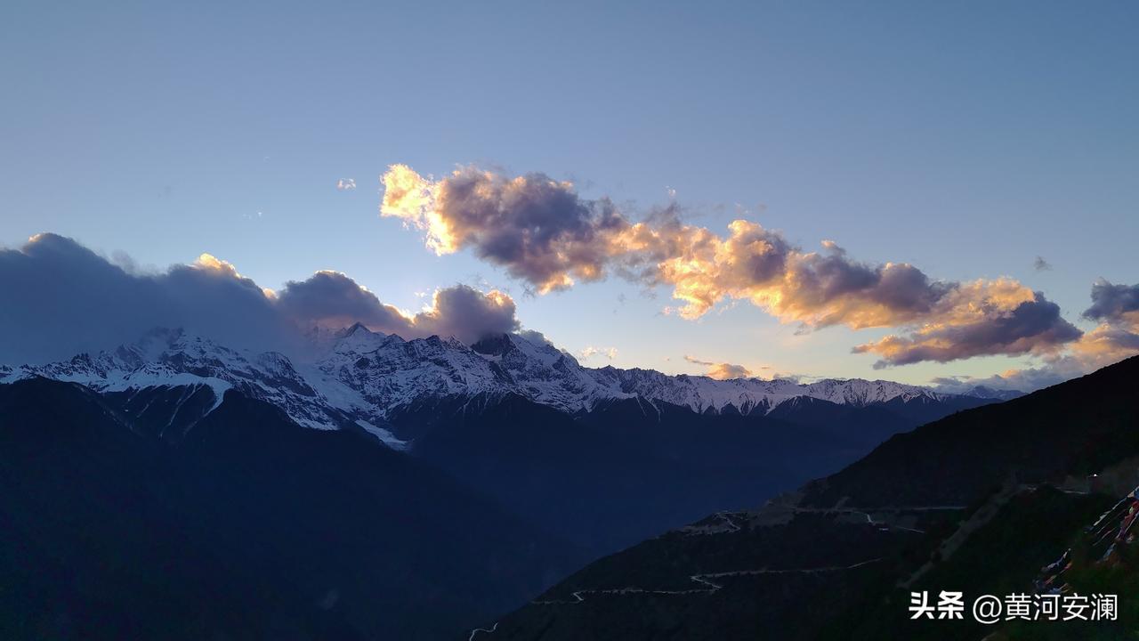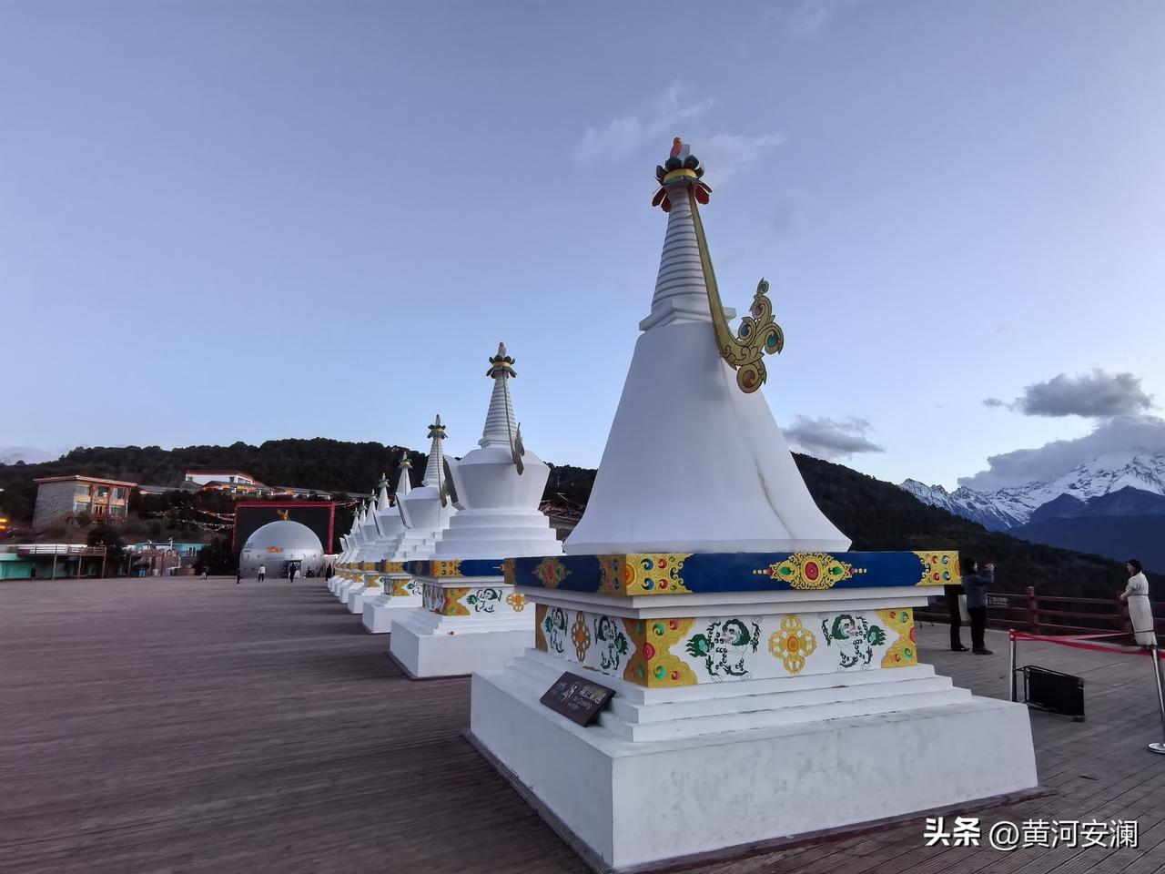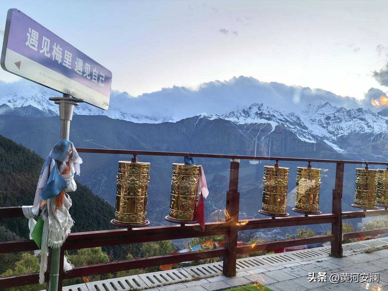 傍晚17:30抵达梅里雪山,恰好赶上日落时分,余晖倾洒在雪山顶上,一片金黄,神圣而又壮观。十一坐白塔守护着这片土地,洁白的哈达敬献给圣山,这一趟,不虚此行!