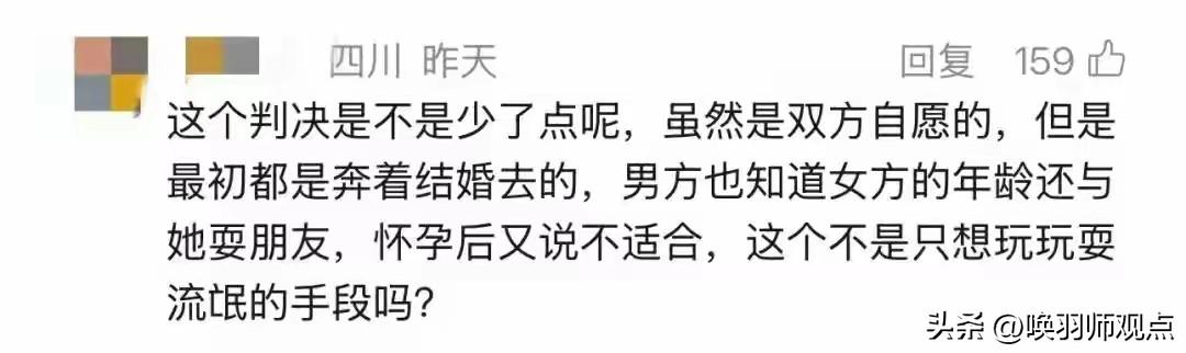 00后小伙致年长8岁御姐女友怀孕后拒婚!法院判了:补偿8500元! 近日,河南新密法院公布一起案件:22岁小伙刘某与30岁女子杨某通过脱单群相识,以结婚为目的恋爱并发生关系。杨某怀孕后,刘某以“年龄不适合”为由拒绝结婚,杨某无奈流产,事后起诉索赔4.5万元。法院认定双方自愿行为不构成侵权,但基于公平原则,判刘某补偿杨某50%损失,合计8500余元。 法律专家指出,法院判决体现了“风险共担”原则。社会学者认为,成年人的性行为,责任应当双向承担。 唤羽师观点: 8500元的补偿,买不回身体和情感的创伤。这起案件提醒所有人:恋爱可以自由,但责任不能缺席。成年人之间,激情之后,更需担当。 您觉得法院判得合理吗?恋爱中的“以结婚为目的”,该不该有法律约束力?评论区等您的高见!