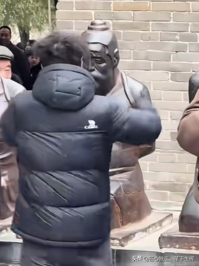 人生憋屈到极点时,确实会想找个地方把怨气狠狠拍出去。岳王庙前那五尊跪像,秦桧、王氏、万俟卨、张俊、王俊,被千百年来的人拍打得发亮,早就不只是冰冷的铁,成了一个情绪出口。 每一巴掌下去,打的不只是奸臣,也是自己心里的委屈、不公与愤懑。 历史的怨气,和当下的不顺,在那一巴掌里,一起泄了。 发泄完,日子还得往前走,但至少心里那股堵着的气,顺了。