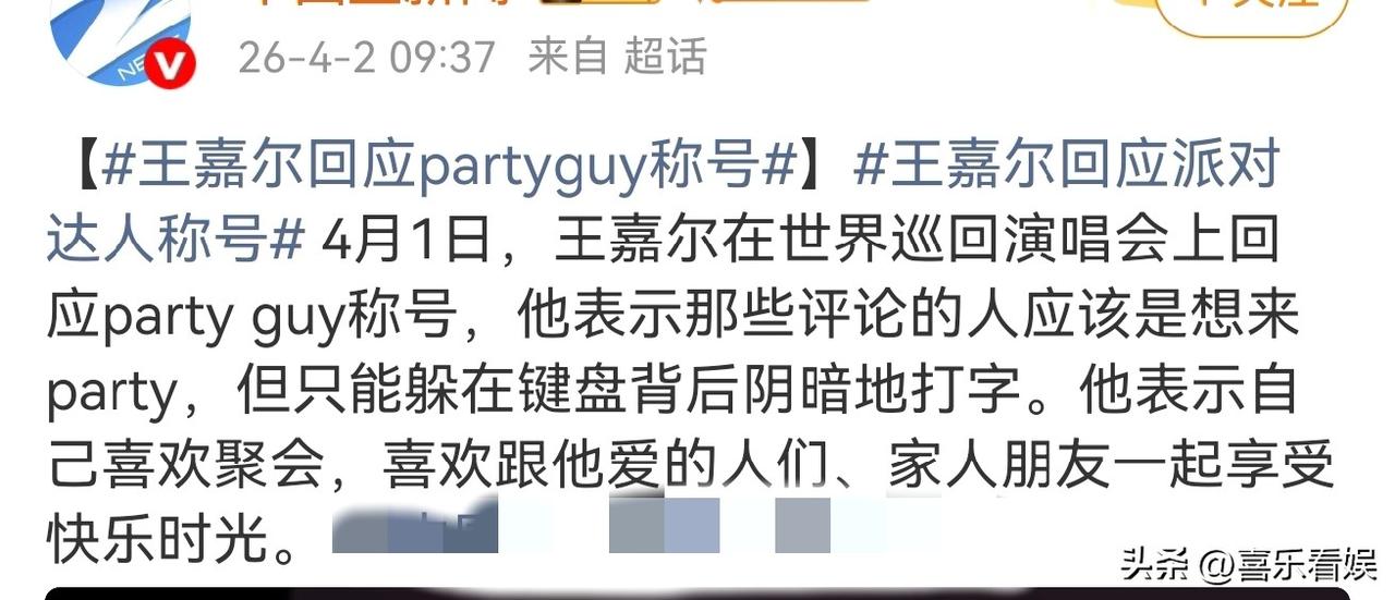其实这个“派对达人”的标签,缠了他挺久了。总有人拿他爱参加聚会、社交多说事,阴阳怪气说他不务正业,甚至编各种乱七八糟的料,之前王嘉尔大多是冷处理,没这么正面硬刚过。