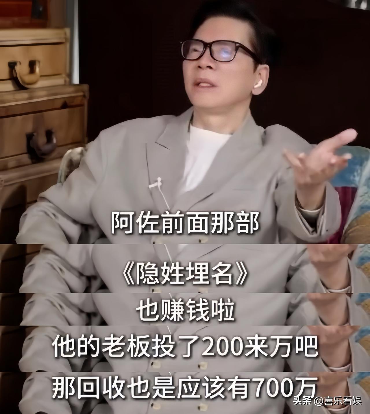 就连向佐之前演的《隐姓埋名》,200万的投入,三个月就赚回700万,这速度比大电影快太多了。