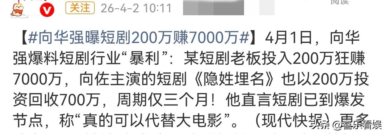 这事儿并不是突然拍脑袋决定的,就在同一天,向华强还爆了个短剧行业的大瓜,直接把这行的暴利给摆到台面上了。