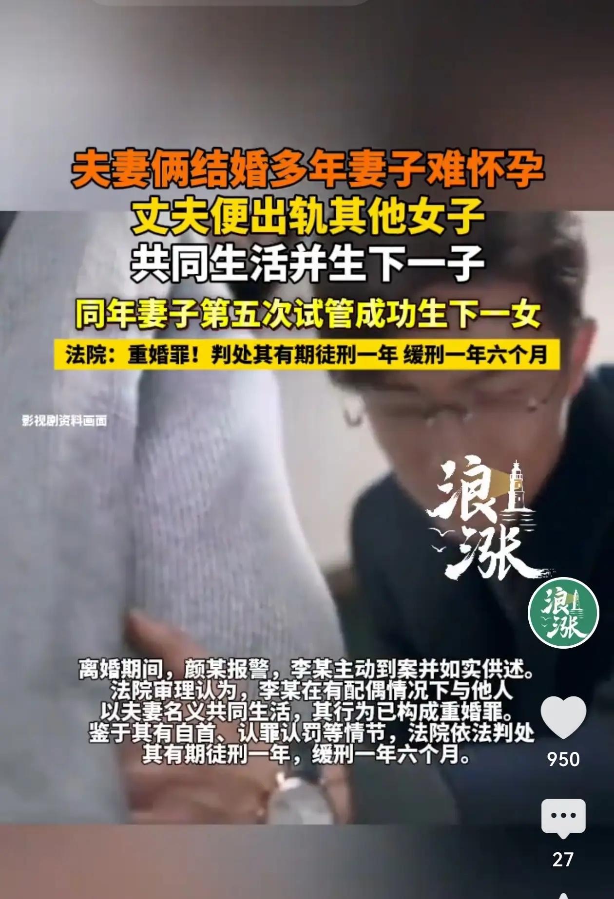 海南,一女子结婚多年迟迟怀不上孩子,咬牙连做4次试管全都失败,第5次拼尽全力终于成功怀孕,却发现丈夫早已出轨,且情人怀孕的时间比她还早。后来她生下女儿,情人生下儿子,丈夫干脆搬去与情人同住。隐忍十几年后,她拿起法律武器,让丈夫付出了应有的代价。 女子颜某和丈夫李某结婚多年,一直没能自然受孕,为了实现做母亲的心愿,她先后接受了4次试管婴儿手术。 每一次手术都要经历促排卵的身体负担、胚胎移植的生理痛苦,以及一次次失败带来的心理打击,她始终没有放弃,直到第5次手术成功,才终于怀上了孩子。她本以为这段煎熬终于结束,能和丈夫一起迎接新生命,给家庭带来圆满,却在孕期意外发现,丈夫李某早已和其他女子保持不正当关系,且这名情人的怀孕时间,比她还要早。 也就是说,在颜某为了怀孕一次次承受手术痛苦时,李某不仅没有陪伴照顾,反而在外面与其他女子同居,甚至等着对方为自己生育儿子。颜某顺利生下女儿后,情人也产下一名男婴,李某彻底不再掩饰,直接搬去与情人同住,对外以夫妻名义相称,周边邻居都将两人视作合法夫妻,完全不知道李某还有原配妻子和年幼的女儿。 颜某的生活彻底陷入黑暗。她为了这段婚姻、为了给丈夫延续后代,付出了常人难以想象的代价,换来的却是彻底的背叛和抛弃。 她不是没有想过立刻离婚、追究丈夫的责任,可看着怀里嗷嗷待哺的女儿,她选择了隐忍。她不想让女儿从小失去父亲,不想让女儿在父母离婚的阴影中长大,更不想让女儿被他人指指点点,只能把所有的痛苦和委屈都压在心底,独自带着女儿生活。 这一忍,就是十几年。这十几年里,颜某看着李某和情人出双入对,看着李某把本该属于她和女儿的关爱、财产,全都转移给情人和儿子,她始终没有发声,只是把全部精力放在抚养女儿上。 她陪着女儿长大,看着女儿完成学业、拥有独立生活的能力,确定女儿能够承受这一切后,才终于决定拿起法律武器,为自己讨回公道。 颜某收集了李某与情人以夫妻名义共同生活的完整证据,包括邻居的证言、两人共同生活的相关记录、子女的出生证明等,随后向警方报案。李某得知颜某报警后,主动到案并如实供述了全部犯罪事实,符合自首的认定条件。 法院审理该案时明确,根据《中华人民共和国刑法》第二百五十八条规定,有配偶而重婚的,或者明知他人有配偶而与之结婚的,处二年以下有期徒刑或者拘役。 李某在有合法配偶的情况下,与他人以夫妻名义持续共同生活,还生育子女,其行为已经构成重婚罪。考虑到李某具有自首、认罪认罚的法定从轻情节,且案件属于婚姻家庭矛盾引发,法院最终依法判处李某有期徒刑一年,缓刑一年六个月。 法官在宣判后专门作出提醒,婚姻受法律严格保护,忠诚是婚姻关系的基本准则,全体公民应当树立正确的婚姻家庭观念,维护平等、和睦、文明的家庭关系,任何挑战法律底线、违背婚姻忠诚义务的行为,都必将受到法律的制裁。 该判决作出后,引发了大量网友的共鸣。很多人此前存在认知误区,认为出轨仅属于道德问题,最多在离婚时少分财产,不会承担刑事责任,而该案清晰明确了法律边界:单纯出轨属于道德范畴,但如果有配偶者与他人以夫妻名义共同生活,就构成重婚罪,属于刑事犯罪,需要承担相应的刑事责任。 不少人疑惑,颜某为何要隐忍十几年才选择维权。对于颜某而言,女儿是她隐忍的全部原因。 她的隐忍不是懦弱,而是为了给女儿创造稳定的成长环境,避免女儿在成长过程中承受父母离婚、父亲犯罪的舆论压力。她默默扛下了十几年的痛苦,等女儿长大成人、具备独立生活能力后,才选择为自己发声,用法律维护自身权益,这份坚持和勇气,让无数人为之动容。 该案也给所有已婚人士敲响了警钟。婚姻忠诚不是可选项,而是法律规定的法定义务,任何理由,包括妻子难怀孕、想要儿子等,都不能成为背叛婚姻、触犯法律的借口。无论出于什么原因,只要突破法律底线,以夫妻名义与他人同居,就构成重婚罪,必将受到法律的严惩,留下终身的案底。 同时,该案也为所有遭遇婚姻背叛的女性提供了维权范本。 遭遇背叛不是自身的过错,不要一味忍气吞声,不要为了孩子无底线妥协,要学会固定证据,通过法律途径维护自身合法权益,让背叛者付出应有的代价,给自己和孩子一个公正的结果。 李某虽然被判处缓刑,无需收监执行,但他的重婚行为已经留下案底,成为人生中无法抹去的污点,也彻底失去了原本的家庭。而颜某,终于摆脱了这段痛苦的婚姻,带着女儿开启了新的生活,用自己的坚持和勇气,赢回了属于自己的尊严。 各位读者你们怎么看?欢迎在评论区讨论。