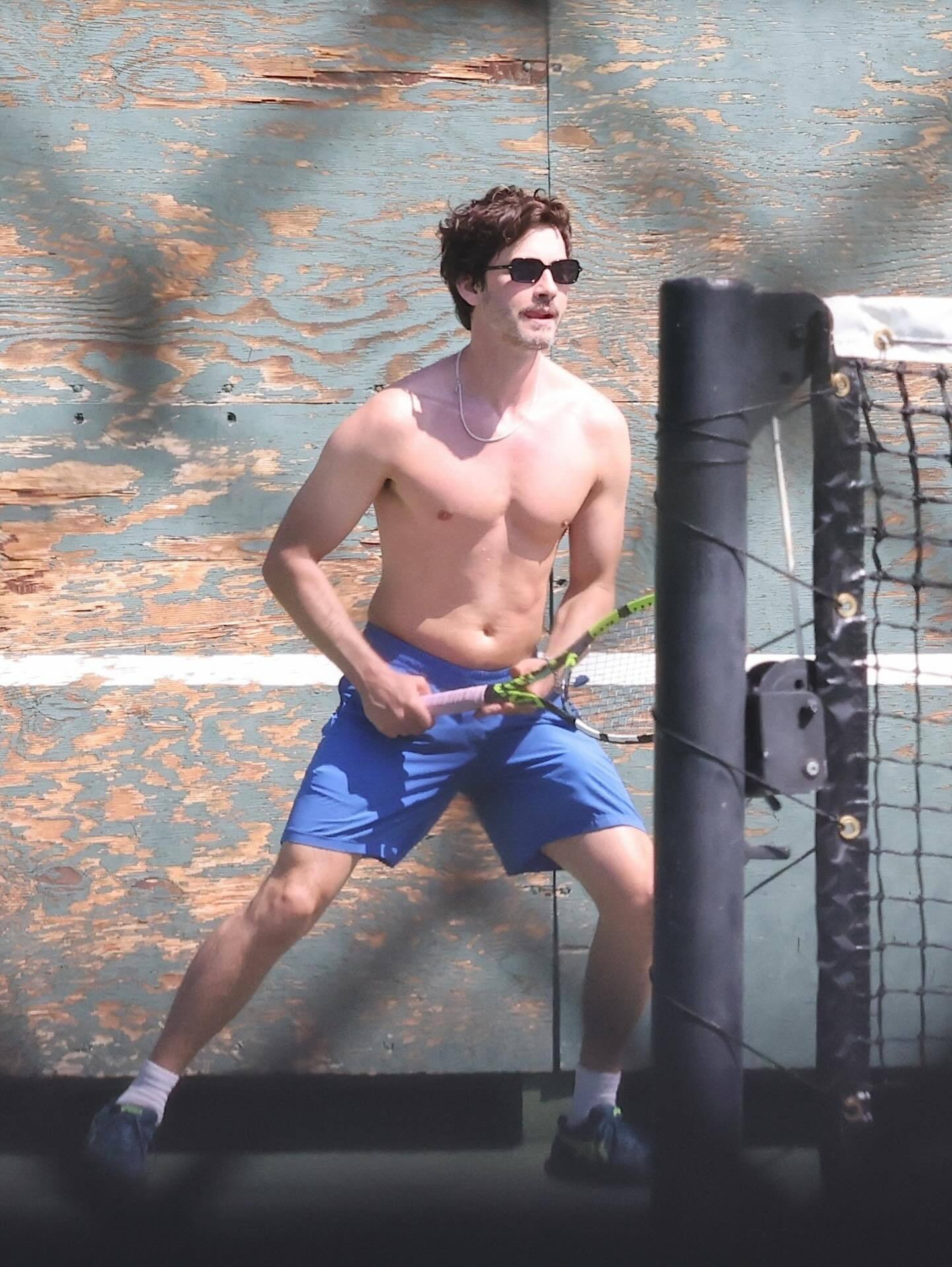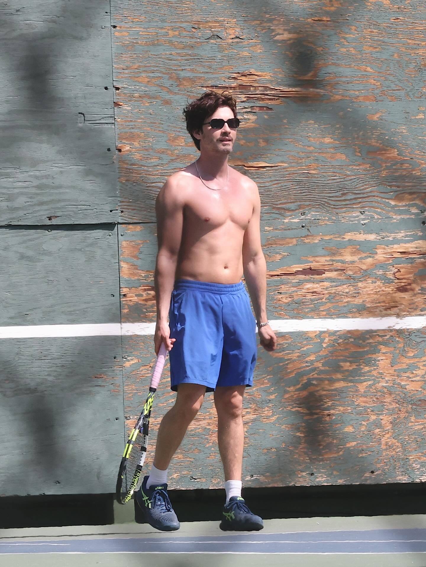 「波西·杰克逊」罗根·勒曼(Logan Lerman)上周在洛杉矶被拍到裸上本身跟朋友打网球。