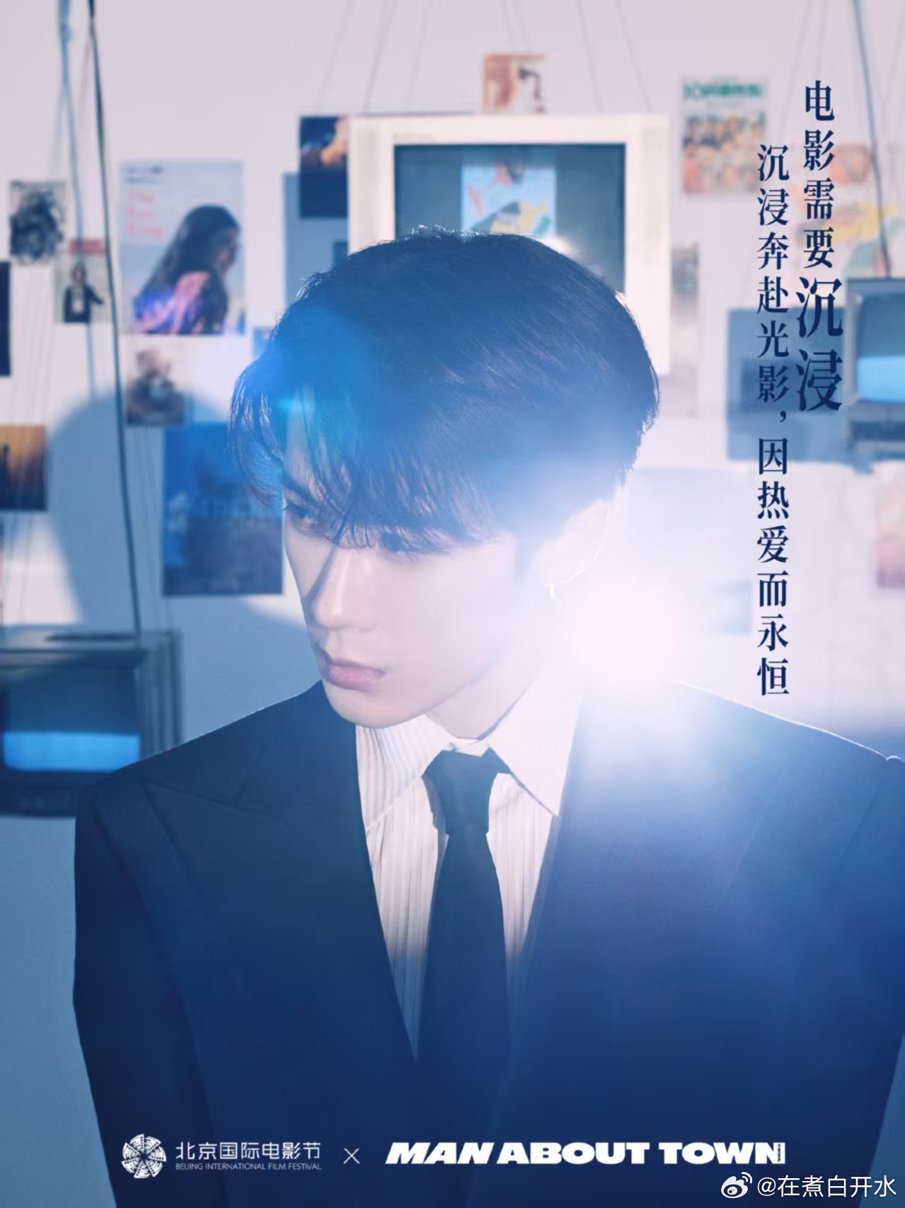 檀健次北影节胶片图北京国际电影节檀健次北影节大使造型太出彩,黑西装搭配光影氛围感