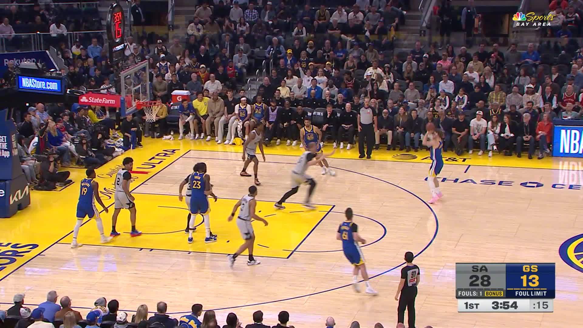 波奇姆斯基命中三分,勇士连得5分!马刺vs勇士
