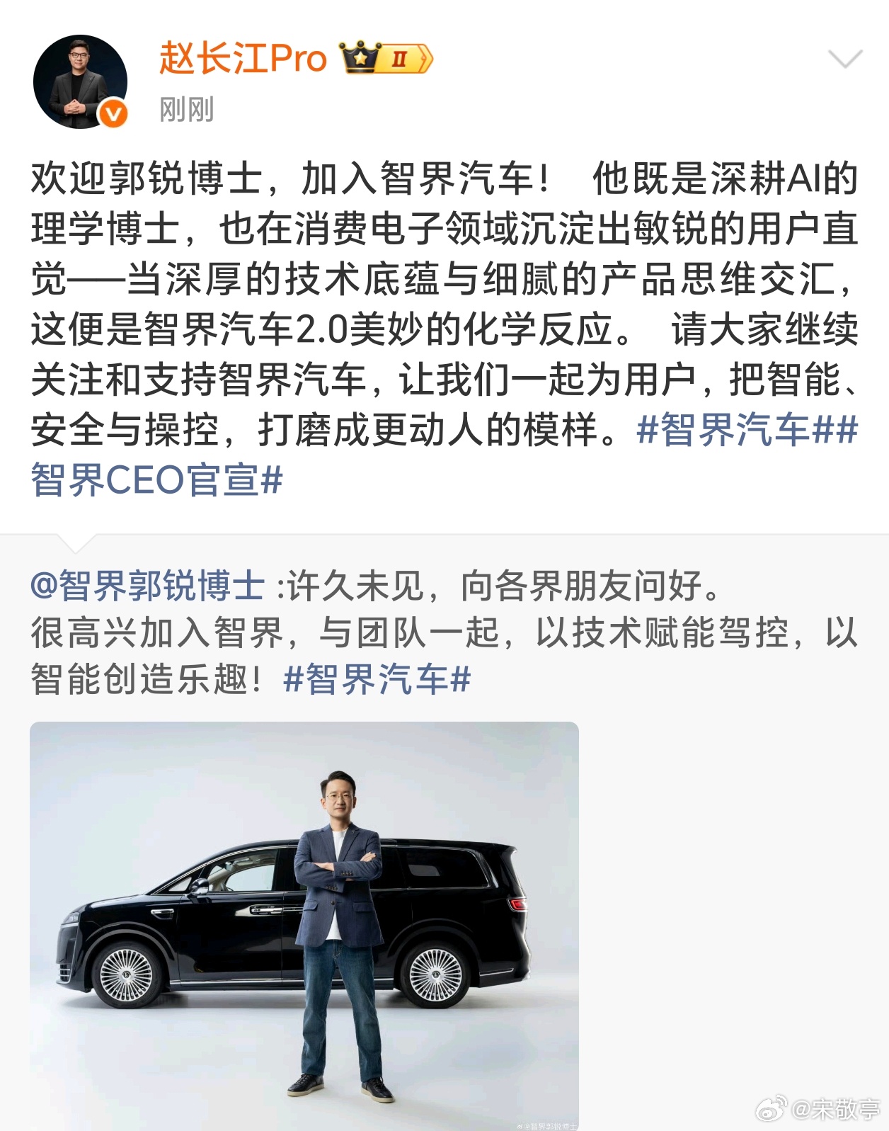 前华为终端大中华区CMO、荣耀CMO郭锐出任智界汽车CEO,与比亚迪前高管赵长江搭班。看来今年智界的动作也非常大啊,看看今年智界的表现吧~