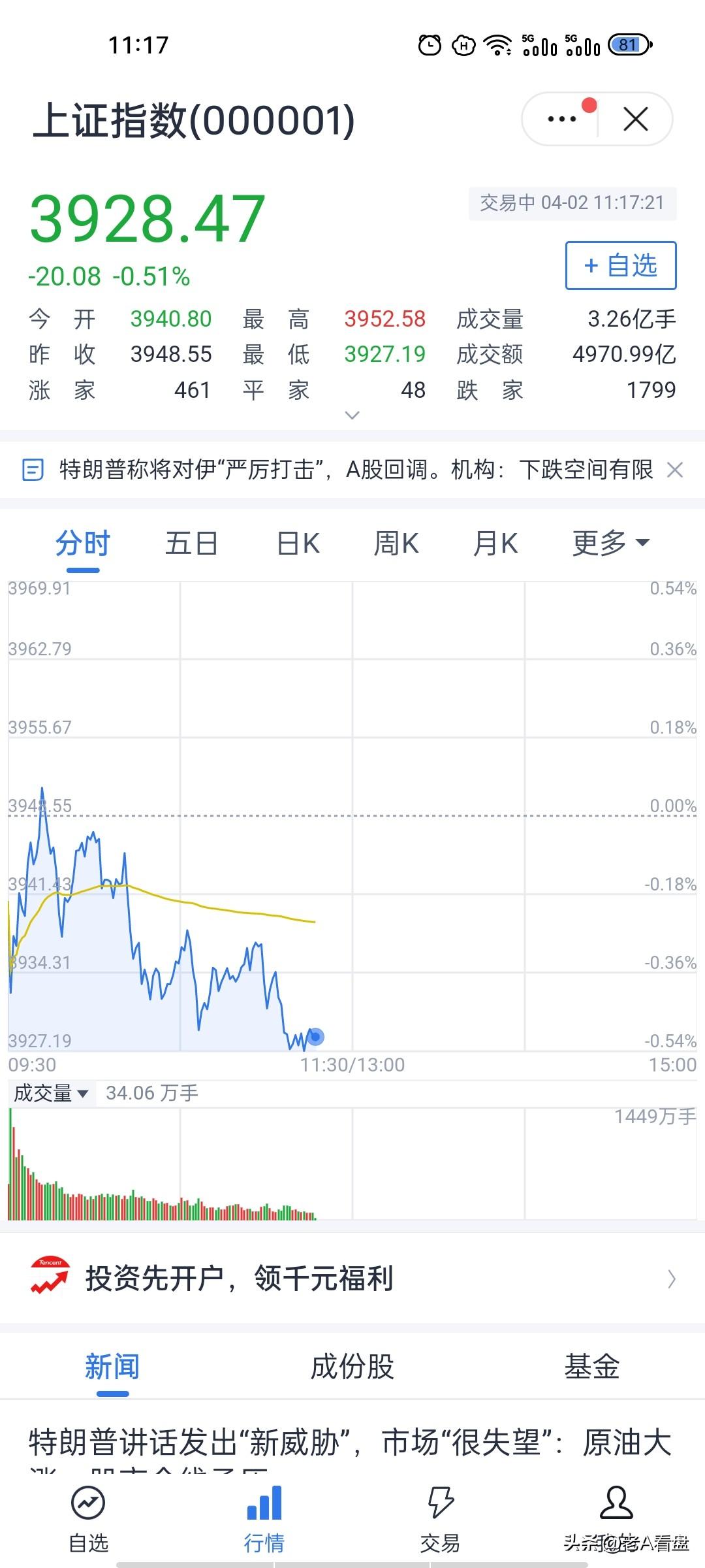 今天A股直接低开低走,盘面表现明显偏弱,想要延续前一日的强势反弹难度明显加大,整体呈现出冲高遇阻、短线获利盘集中出逃的格局。从盘面表现来看,资金避险情绪明显升温,前期强势的热门板块出现明显分化,部分资金开始转向防御性品种避险,市场整体做多动能有所减弱。