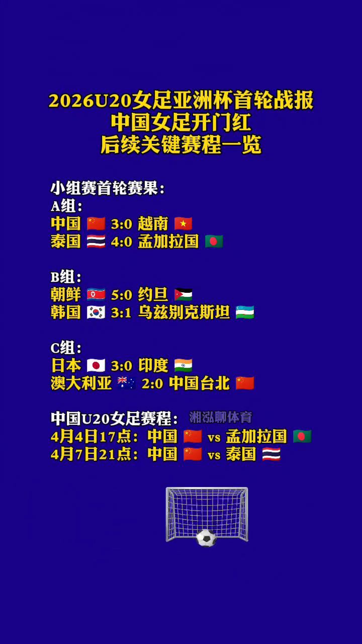 2026U20女足亚洲杯首轮战报,中国女足开门红,后续关键赛程一览。