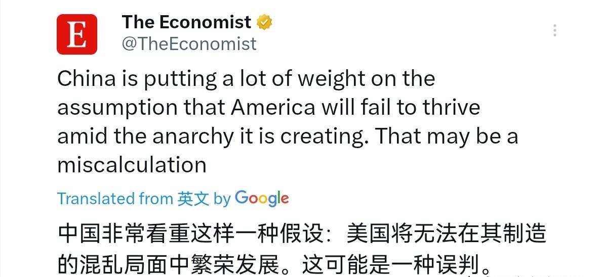 中国“错判”了美国!经济学人刊文声称,中国对美国可能“误判”了!4月2日,经济学人刊文表示,中国的顾问、学者、专家以及现任和前任官员,几乎所有人都认为这场战争是美国犯下的一个严重错误。该文声称,中国之所以置身事外,是因为中国理解拿破仑·波拿巴在奥斯特里茨战役中,面对敌军放弃高地时所说的那句格言:“永远不要打断正在犯错的敌人。” 但经济学人表示,中国在很大程度上强调了这样一种假设,即美国将无法在其正在制造的混乱状态下繁荣发展。 很显然,经济学人似乎不太同意美国正在犯严重错误的判断,更不认为美国会被自己制造的混乱拖垮,可这种说法,更像是忽略了美国当下的真实困境,也曲解了中国的立场。 早在2021年,《经济学人》就曾刊文指出,拜登政府的对华政策陷入困境,不仅高估了美国的全球实力,也低估了中国的经济规模,其推行的“零和博弈”策略,不仅让美国盟友受损,最终也会拖累美国自身发展。 短短几年过去,这份判断正在不断被验证,可如今该刊却反过来指责中国“误判”,难免让人觉得有些自相矛盾。 中国从不否认美国的实力,毕竟作为全球最大的发达国家,美国在科技、军事等领域仍有不可忽视的优势,但优势不代表可以为所欲为,更不代表犯错后可以全身而退。 最近这几年,美国亲手制造的混乱,早已开始反噬自身:2025年,美国出现了半个多世纪以来首次移民净流出现象,每年有五六千人放弃美国国籍,越来越多的中产阶层选择移居海外,背后是不断攀升的生活成本、频发的枪支暴力和日益撕裂的政治生态。 更直观的是经济层面,2026年初,美国经济就从所谓的“软着陆”陷入“类滞胀”困境,增长放缓、通胀反弹,家庭债务飙升至历史新高,67%的美国人成为“月光族”,近四成成年人连400美元的意外开支都难以承担[4],这样的状态,怎么能说美国在混乱中实现了繁荣? 《经济学人》所谓的“中国误判”,本质上是站在西方视角,高估了美国的自我修复能力,也低估了中国的战略定力。 中国选择置身事外,不是“坐看美国犯错”,而是坚持不干涉他国内政的原则,更清楚地知道,任何国家的错误,最终都需要自己承担后果,外力干预只会让混乱加剧。 就像美国发起的贸易摩擦,本意是遏制中国发展,可最终却导致美国进口成本上升、通胀压力加大,还遭到了国际社会的普遍反对,这一点,新华社发布的《关于中美经贸关系若干问题的中方立场》白皮书早已明确指出,美方的单边主义、保护主义行径,最终只会自食恶果。 很多人可能会疑惑,美国既然问题重重,为什么还能维持表面的强势?其实答案很简单,美国的强势,更多是靠过往积累的底蕴和霸权手段支撑,而非真正的健康发展。 比如,美国通过加息、制裁等方式转移国内矛盾,却让全球经济承受了巨大压力;为了维护霸权,不断拉拢盟友搞阵营对抗,可越来越多的盟友已经开始清醒,毕竟跟着美国对抗中国,只会损害自身的经济利益。 要知道,以中国为首要贸易伙伴的国家数量,几乎是以美国为首要贸易伙伴的国家的两倍,在经济全球化的今天,没有哪个国家愿意为了美国的霸权野心,牺牲自己的发展机遇。 中国的判断,从来不是基于“希望美国衰落”,而是基于客观事实的理性观察。我们始终认为,中美作为世界上最大的发展中国家和最大的发达国家,合作共赢才是唯一正确的选择,这也是新华社多次强调的核心立场——中美经贸关系的本质是互利共赢,分歧可以通过平等对话解决,而不是搞零和博弈。 《经济学人》之所以抛出“中国误判”的论调,或许是没能跳出西方的霸权思维,习惯了用对抗的视角看待中美关系,却忽略了时代早已变了,单边主义、霸权主义早已不符合世界发展的潮流。 说到底,所谓的“中国误判”,更像是《经济学人》自己的片面解读。中国没有误判美国的实力,也没有误判美国犯错的后果,我们始终保持清醒和理性,既不高估美国,也不低估自己,在复杂的国际局势中,坚持走自己的路,专注于自身发展,这才是最稳妥、最正确的选择。 毕竟,一个国家的兴衰,从来不是靠别人的判断决定的,而是靠自身的所作所为,美国能否摆脱当下的困境,关键不在于中国是否“误判”,而在于美国能否正视自己的错误,放弃霸权思维,回归理性合作的轨道。