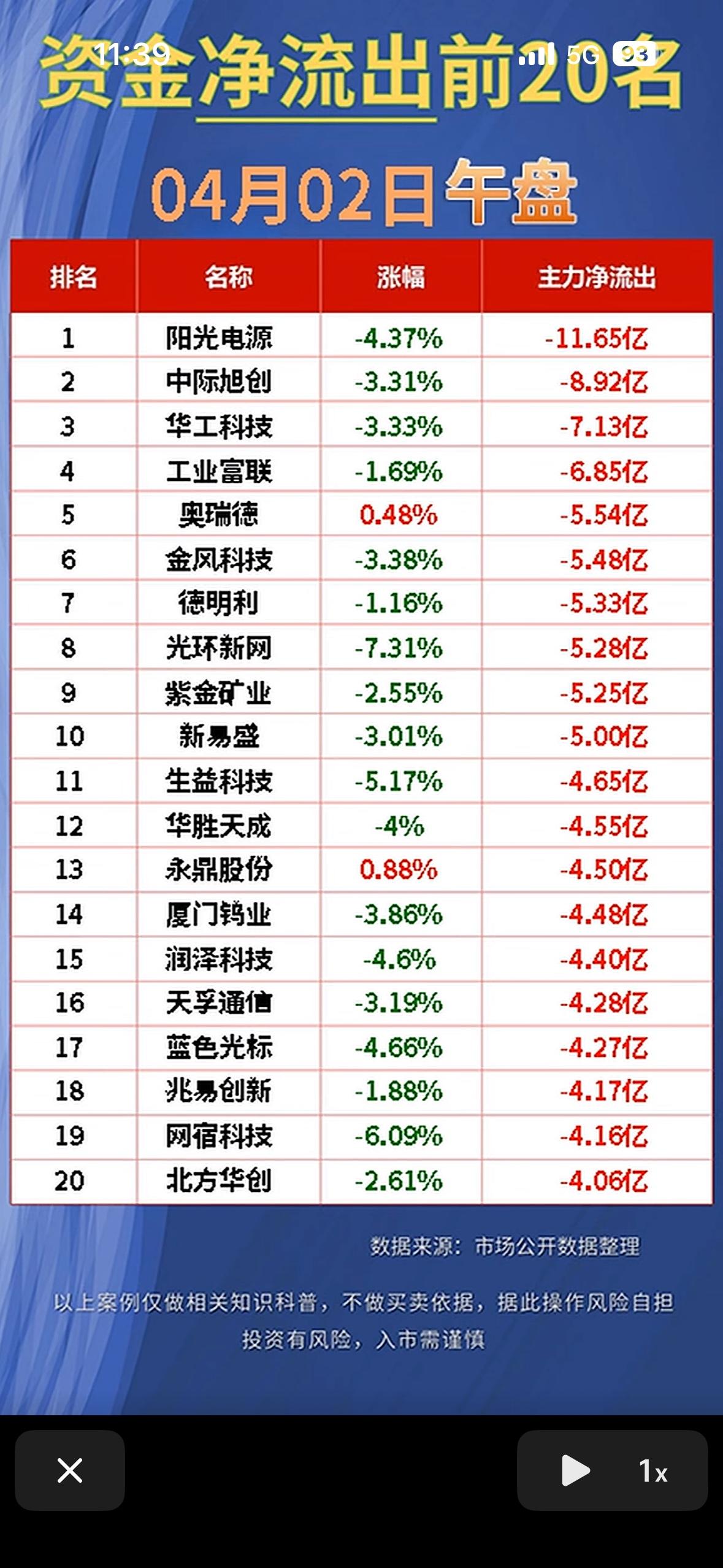 4月2日今日资金净流入与净流出前20名股票一览!📈💰 金融圈的朋友们看过来