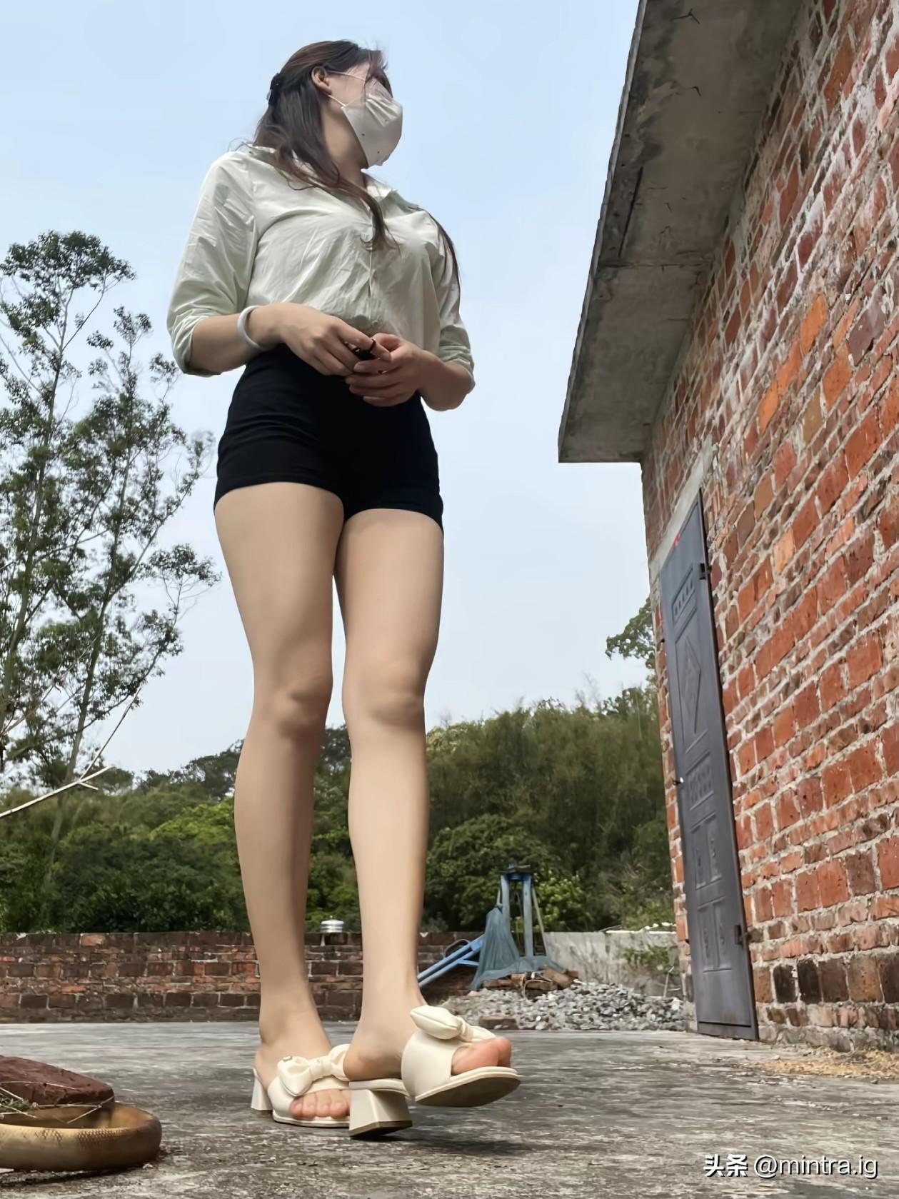 浅绿衬衫裹着夏日的温柔,黑短裤藏着随性的自在,一双蝴蝶结凉拖,就把日子踩得慢悠悠。