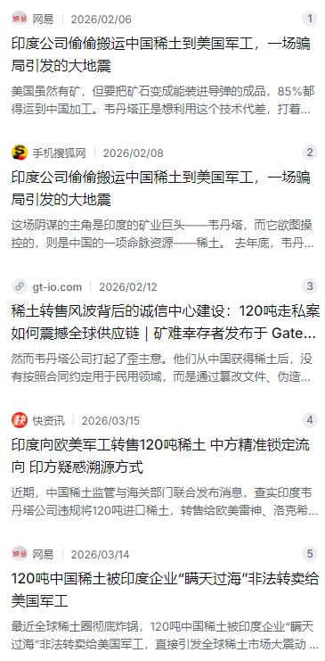 最近全球稀土圈彻底炸锅,120吨中国稀土被印度企业“瞒天过海”非法转卖给美国军工,直接引发全球稀土市场大震动,中国出手严查后,不仅掀起行业诚信风暴,更让印度稀土产业陷入难以挽回的信誉危机。 麻烦看官老爷们右上角点击一下“关注”,既方便您进行讨论和分享,又能给您带来不一样的参与感,感谢您的支持! 这起事件的主角是印度矿业巨头韦丹塔公司。这批稀土的总量达到120吨,里面包含钕、镝等军工领域必不可少的关键元素,市场价值极高。他们向中国提交了三十多份申请材料,声称这批稀土将用于印度本土新能源汽车的电机生产,还附上了详细的工厂坐标、产能规划和环保评估报告。然而,这批货刚离开中国海关,就被秘密转运到马来西亚、泰国等东南亚港口,换包装、改标签,最终绕道流入了美国雷神公司和洛克希德·马丁公司的供应链,被用于导弹制导系统和F-35战斗机等敏感军工领域。 为什么120吨稀土能引发全球震动?因为稀土在现代工业中的地位太特殊了。没有它,新能源汽车的电机就是一堆废铁,风力涡轮无法运转,智能手机的高端芯片也没法造。而在军事领域,精确制导导弹、雷达系统、战斗机发动机都离不开稀土材料的支撑。目前全球90%以上的稀土精炼产能都在中国,美国虽然也有矿,但要把矿石加工成能用在导弹上的成品,85%都得运到中国来完成。韦丹塔公司正是想利用这个技术差,打着民用的幌子搞“蚂蚁搬家”式的非法转售,赚取高额差价。 然而他们没想到的是,中国早就建立了一套严密的稀土全流程溯源体系。每批稀土出厂时都配有唯一的“电子身份证”,通过区块链技术锁死了从矿区到运输轨迹的所有数据,任何改动都会触发预警。更厉害的是同位素“指纹”检测技术——不同矿区的稀土含有独特的同位素比率,就像人的指纹一样无法复制。即便稀土被加工成成品、换了包装,也能精准追溯到国内的源头矿区。韦丹塔公司的货轮刚偏离预定航线,后台系统就拉响了警报,整套非法转运链条被完整锁定。 在掌握全部证据后,中国迅速采取了行动。涉事的印度韦丹塔公司被列入不可靠实体清单,永久取消对华稀土购买资格,在华资产也被冻结。中国商务部还暂停了对印度的稀土出口许可审批,对所有经印度中转的订单实施穿透式审查。与此同时,中国将稀土分离技术出口纳入管制范围,32项关键工艺被列入禁止出口限制出口技术目录,相当于从源头上掐断了非法转售链条。 这批稀土明明签了民用承诺书,最后却进了美国军工生产线,印度这边的操作让所有人都傻了眼。据业内消息,韦丹塔转手的这批稀土当中,有些流入了雷神公司的“标准-6”导弹生产线,还有些被用在了F-35战斗机的永磁体部件上。美国雷神公司大约95%的稀土材料依赖中国供应或在中国加工,一旦这条“歪门邪道”被堵死,短时间内根本找不到替代品,军工生产进度直接受到了影响。 但这起事件最惨的其实不是美国,而是印度自己。韦丹塔公司被禁之后,中国对印度的稀土出口几乎停滞,印度国内产业链瞬间被卡了脖子。印度虽然稀土储量在全球排前列,但加工能力极为薄弱,本土提炼的纯度最高只能达到92%左右,而军工级标准需要99.99%。印度国内90%以上的高纯度稀土依赖从中国进口,这突然一断供,塔塔汽车等本土车企因缺少关键的钕铁硼永磁材料,生产线频频亮起红灯。 2025年上半年,印度从中国进口的稀土永磁材料已经下滑了67%,大批车企面临停产危机。印度政府紧急喊停了本土稀土出口,要求优先满足国内需求,但根本无济于事——自己的加工能力摆在那里,原料断了就是断了。德国大众、美国通用这些原本想通过印度转口采购稀土的企业,也全都取消了订单,转而直接向中国申请“绿色通道”。有合规企业在提交完整文件后72小时就通过了审批,而印度的申请被全数驳回。 这次事件让印度稀土产业遭遇了毁灭性的信誉危机。韦丹塔公司伪造三十多份文件的行为被曝光后,国际买家对印度企业的信任度直接跌到了谷底。日本企业原本砸了大钱扶持印度稀土产业,结果因为六成原料靠中国供应,项目成了烂尾楼。印度商务部长紧急赴华请求恢复出口,但信任这种东西一旦碎了,不是轻易能粘回去的。 更麻烦的是,印度自己的稀土产业本来就没建起来。2025年他们才建成第一座本土稀土金属厂,月产能只有15吨,只能满足国内20%到25%的需求。印度政府推出的数百亿卢比“自救计划”,也因为基础设施落后、技术人才短缺,产能连预期的一半都达不到。离心萃取机这类核心设备,欧美供应商怕违反出口管制规定,根本不敢卖给他们。印度想自己建起完整的稀土产业链,没有十年二十年根本看不到影。
