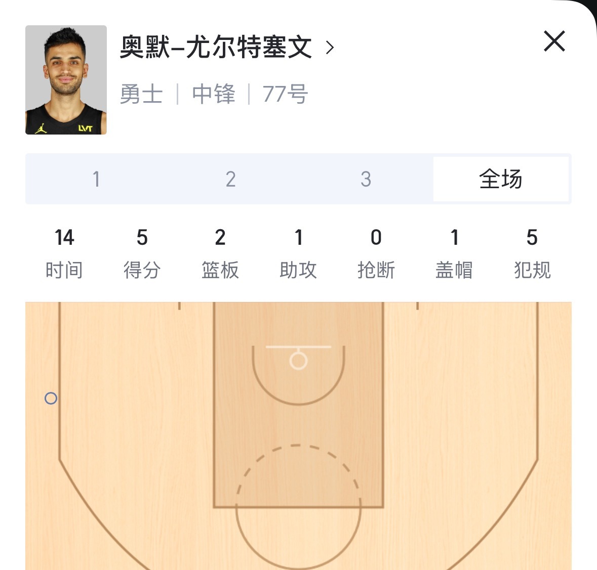 给大家看个好玩的 勇士今天只有9人能出战而今天唯一的两位内线 现在都是5犯 等会
