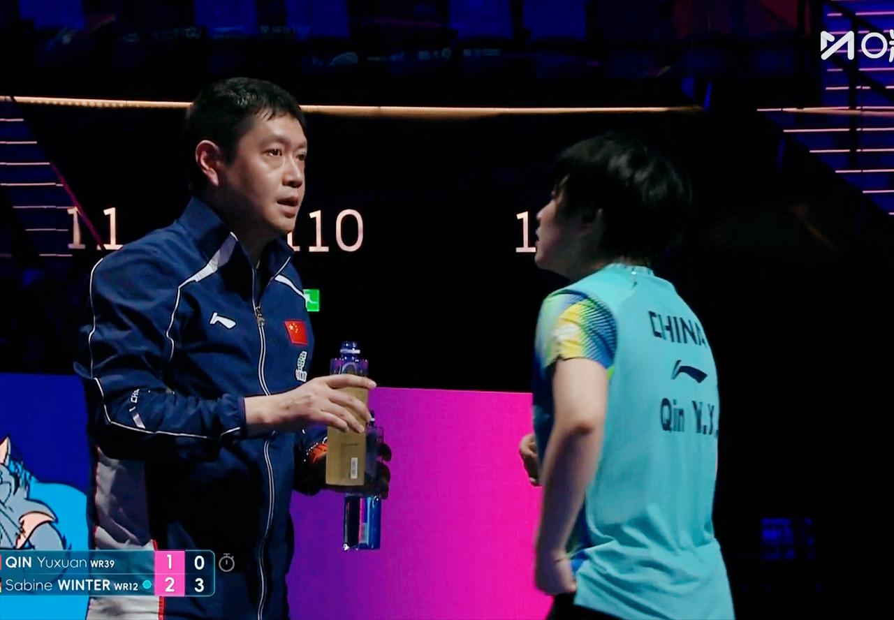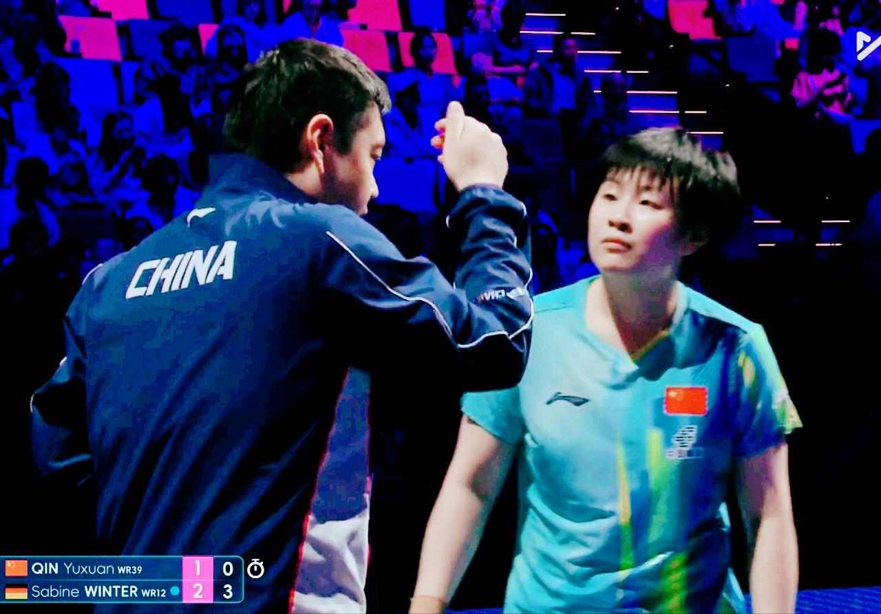 邱贻可气崩了!现场指导从没受过这气! 邱贻可一直和覃予萱说: 发正手短, 别给反手。 因为温特反手是防弧胶皮, 一磕, 很难判断旋转。 结果覃予萱11:8拿下第一局后, 听不进邱贻可得话 一直发反手。 把温特打嗨了, 连扳3局, 3:1领先覃予萱 气的侯英超都说: 怎么还往反手位发? 一定要坚定战术! ........ 老侯气的不说话了。