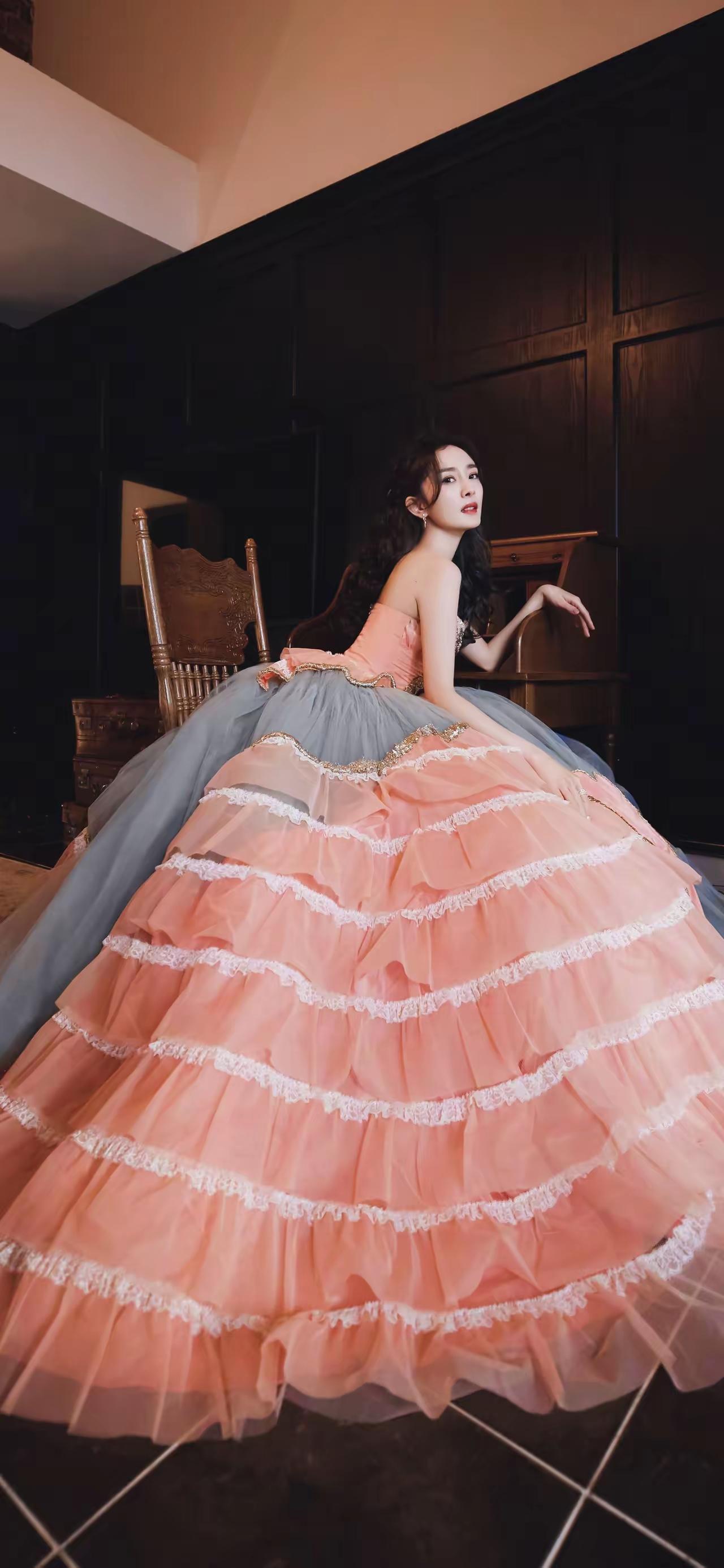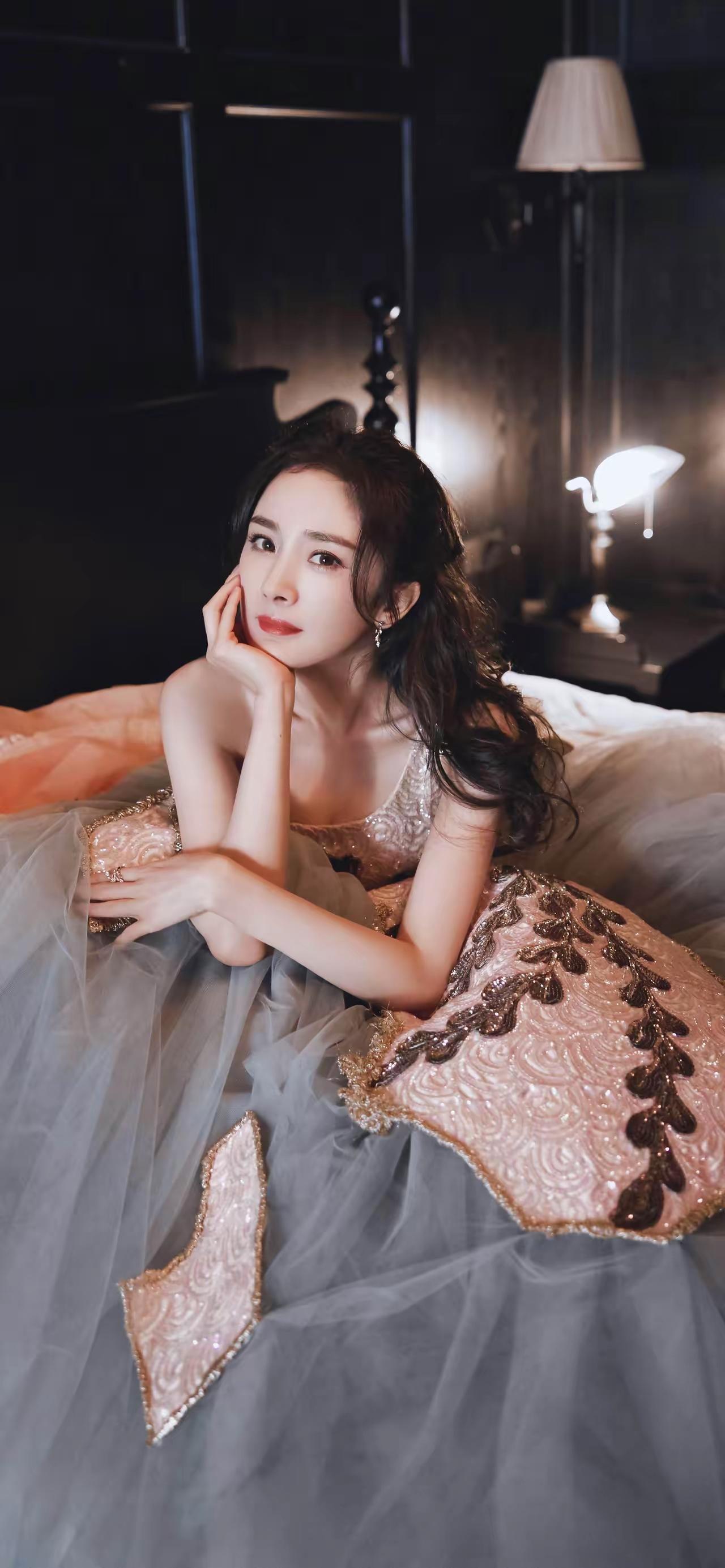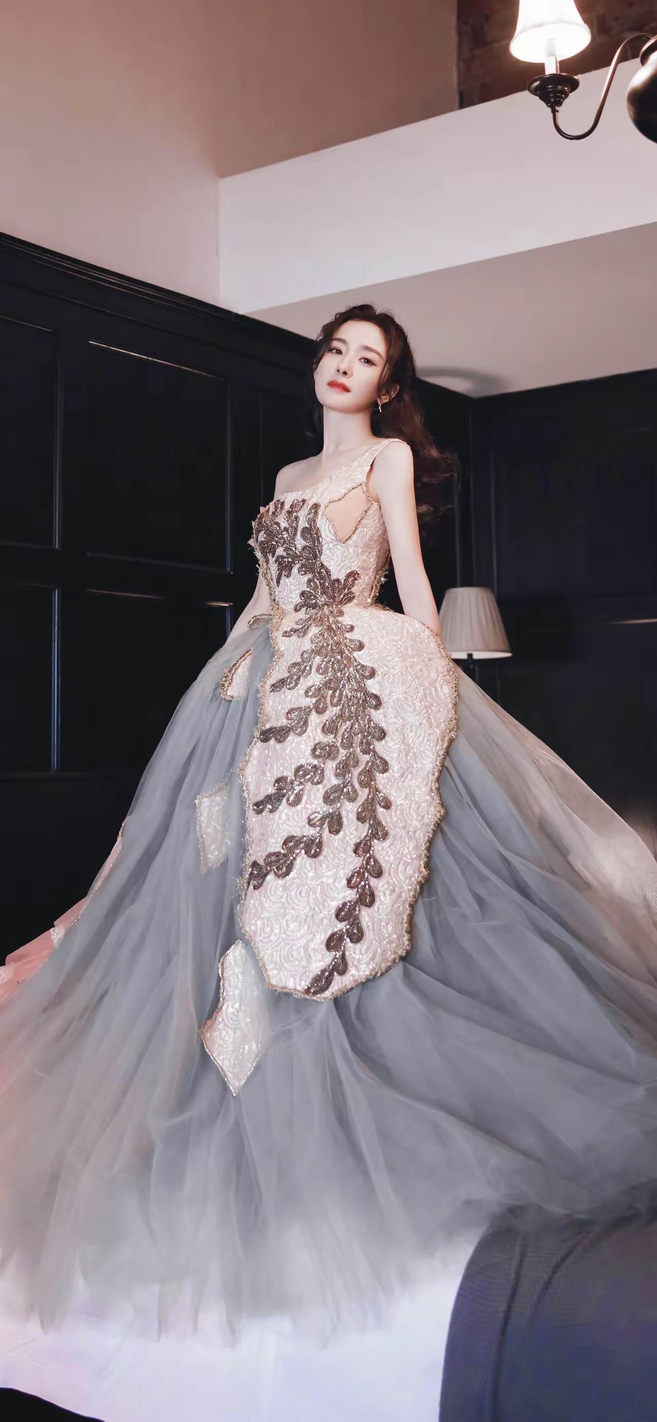 美女壁纸~杨幂,一袭粉灰撞色的高定礼裙,是揉碎了晚霞与晨雾的浪漫。慵懒卷发衬着暖
