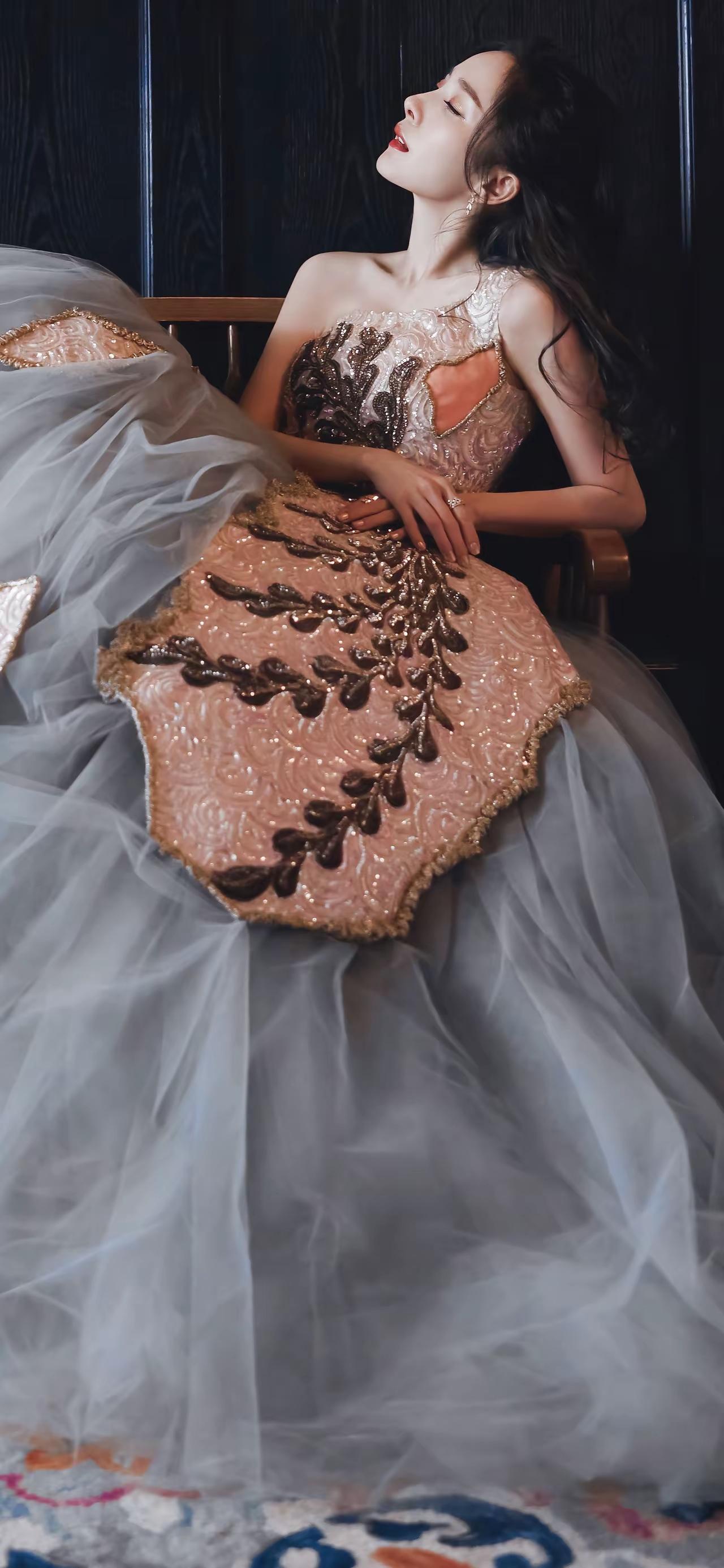美女壁纸~杨幂,一袭粉灰撞色的高定礼裙,是揉碎了晚霞与晨雾的浪漫。慵懒卷发衬着暖光,演绎着甜而不腻的高级与优雅。每一个侧影,都是时光沉淀的画报级美感