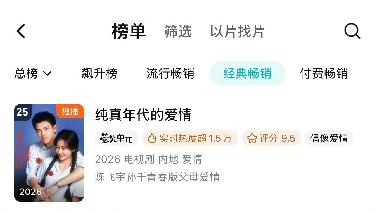 陈飞宇主演的纯真年代的爱情进入🐧拉新年榜25长尾效应🈶陈飞宇