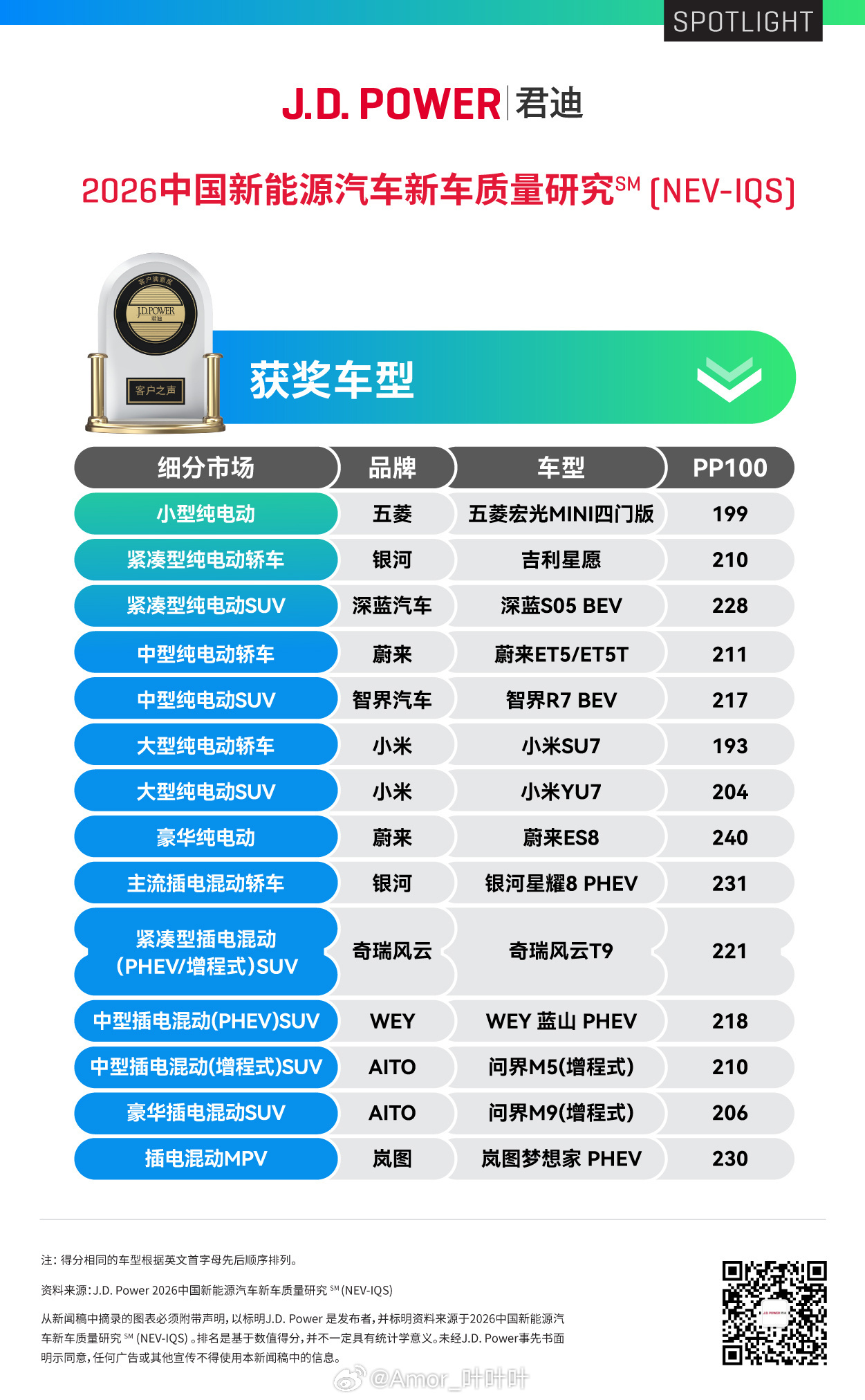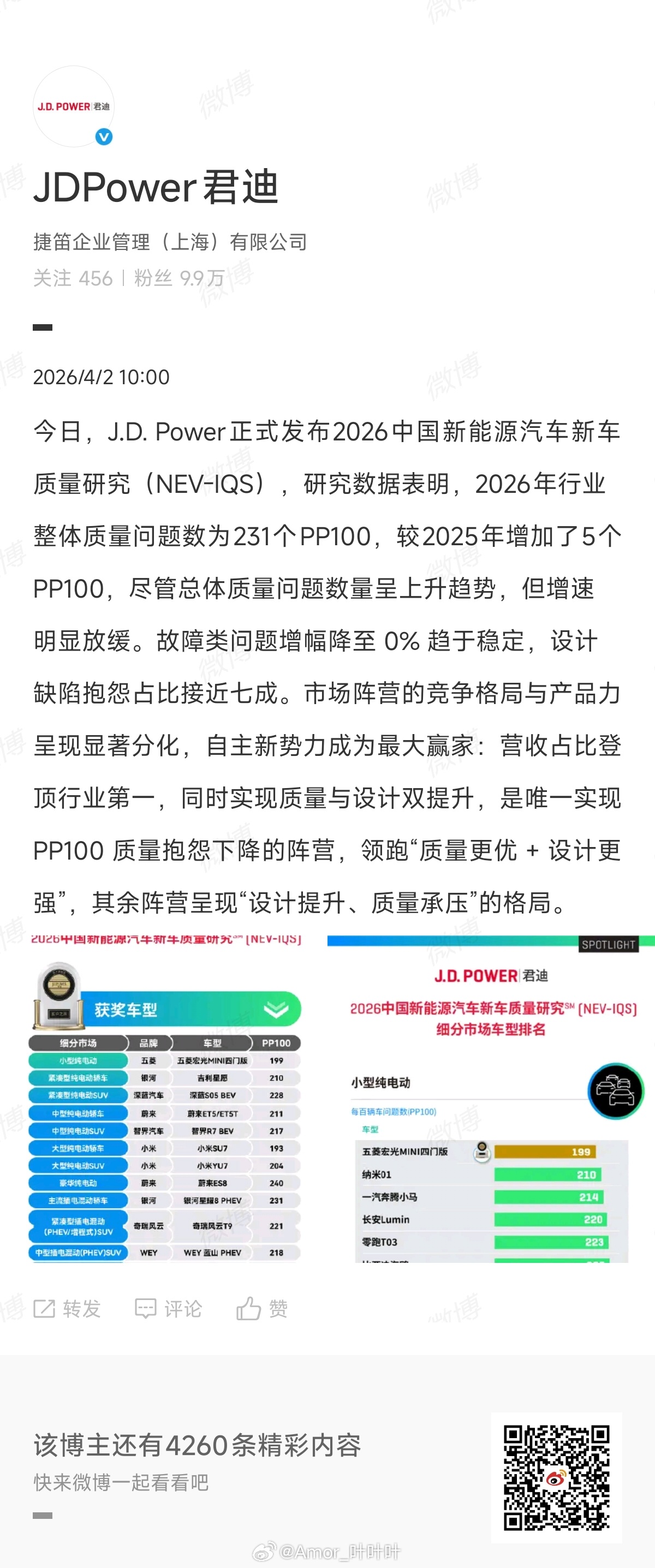 J.D. Power 2026 NEV-IQS显示:行业平均PP100为231,故障增幅趋于0%,设计缺陷抱怨占比近七成,自主新势力实现质量与设计双提升。而小米SU7、YU7正是其中标杆,反观有些人,敢拆车看零件吗?乱喷的底气到底在哪?