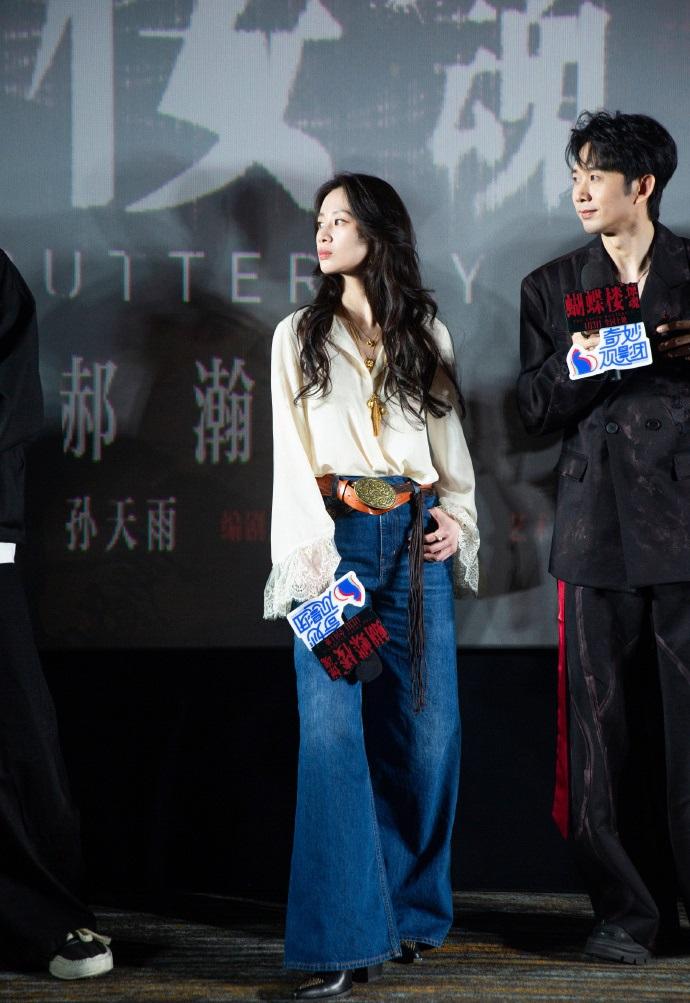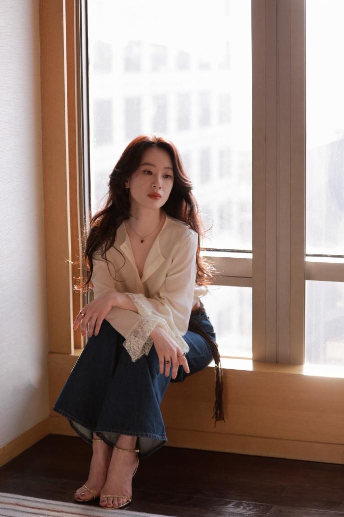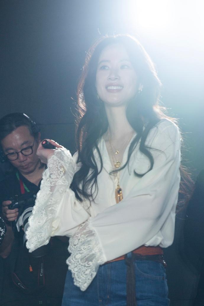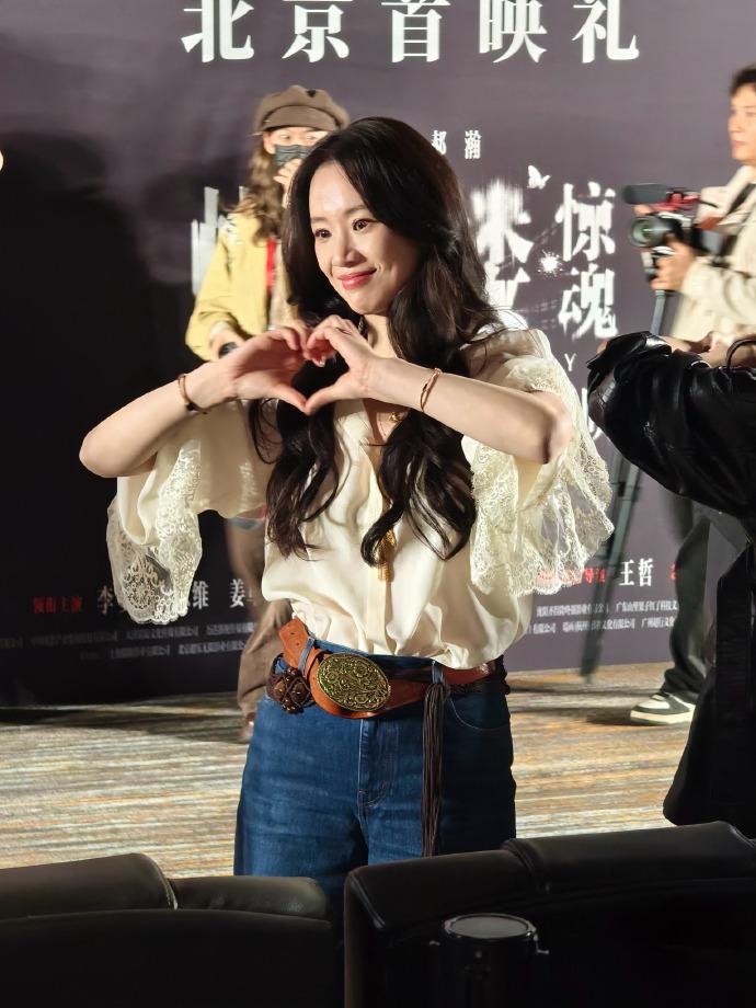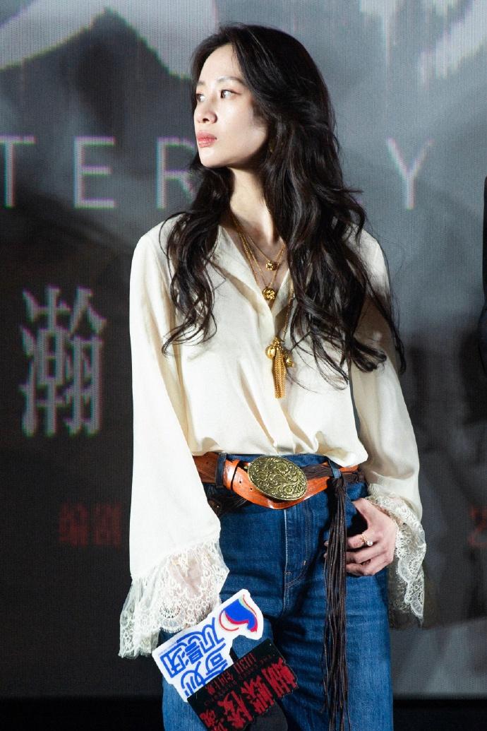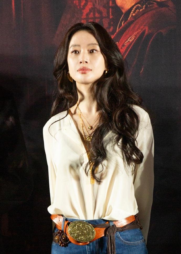 最近李梦在宣传新片的时候搭配的很简洁,看上去年轻又迷人,真的好美。 李梦上身穿宽松的衬衣,衬衣袖口上有很时尚的蕾丝设计,能够展现出满满的浪漫感,效果很不错。 她下身穿蓝色的高腰牛仔裤,凸显出了潇洒随性的魅力,真的是太迷人了。 李梦脚踩黑色靴子,还留着漂亮的波浪卷长发,很有妩媚风情。 她腰间扎着宽大的腰带,腰带上有奢华的金属扣,脖子上还搭配了金色的项链,带给人一种高贵又潮流的感觉。