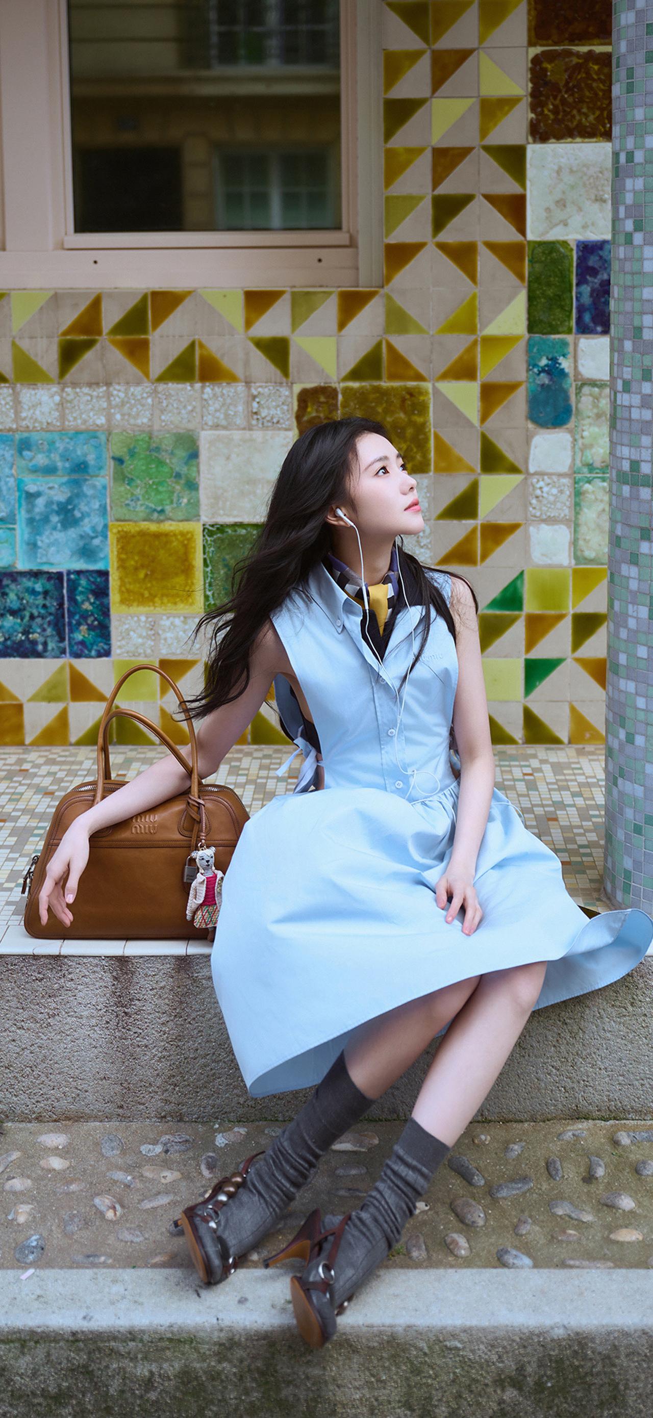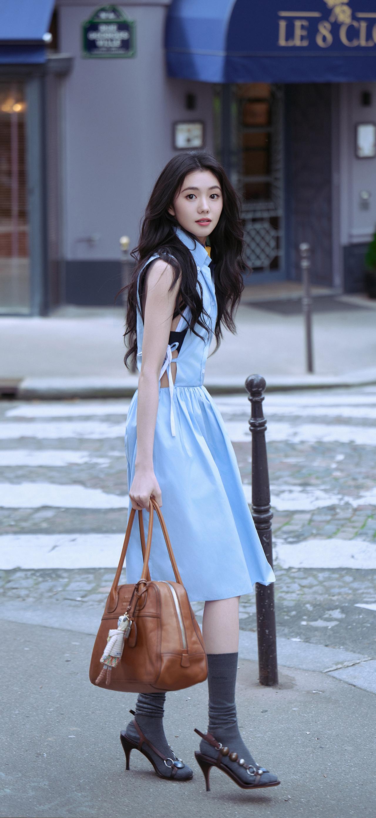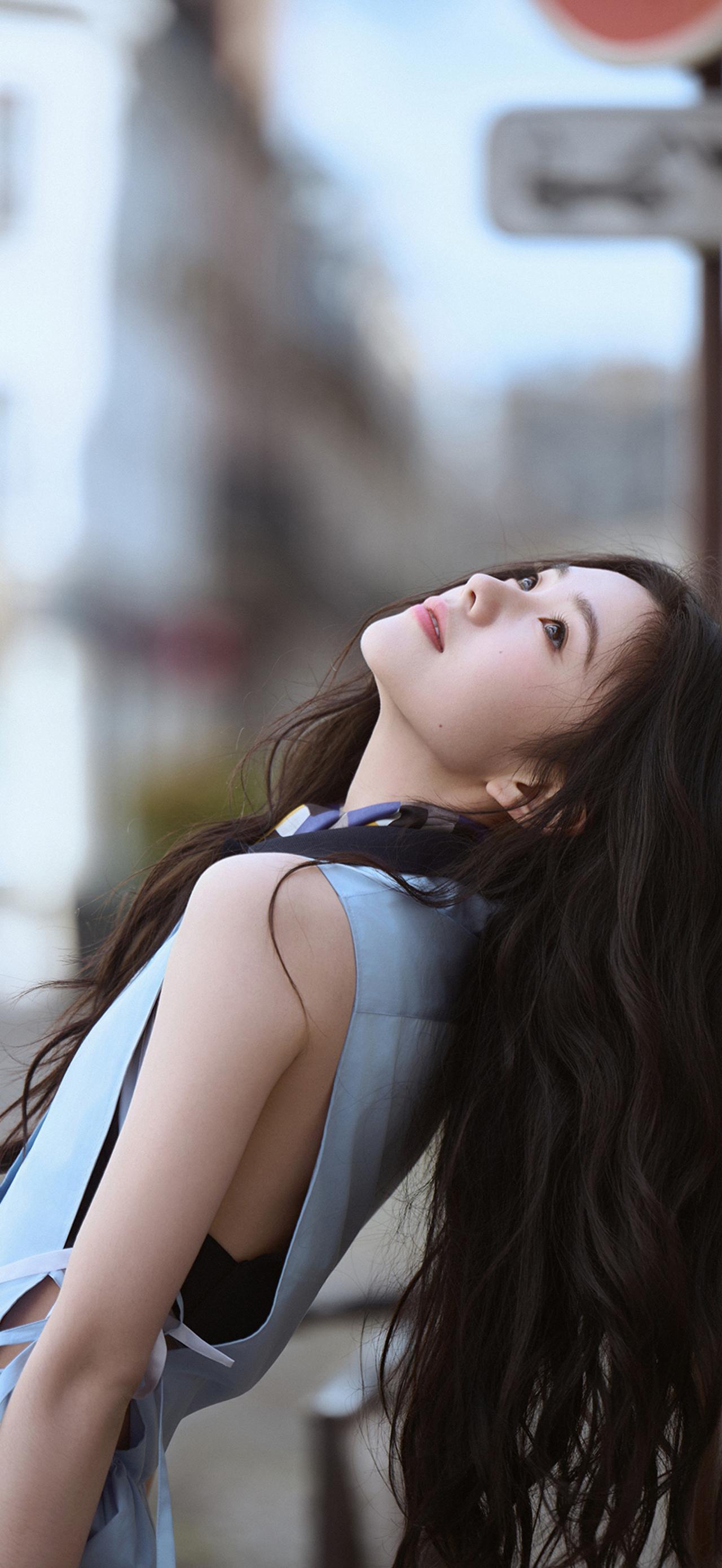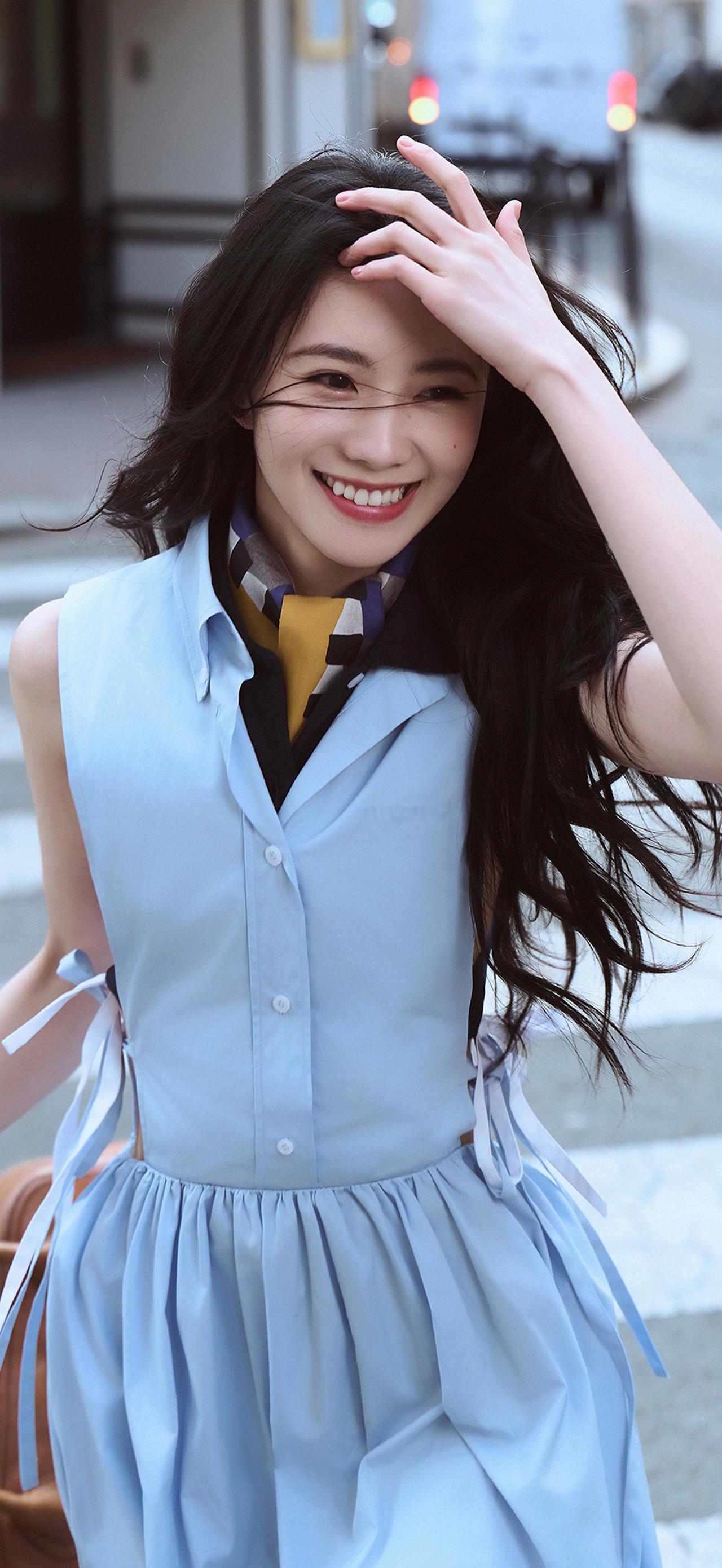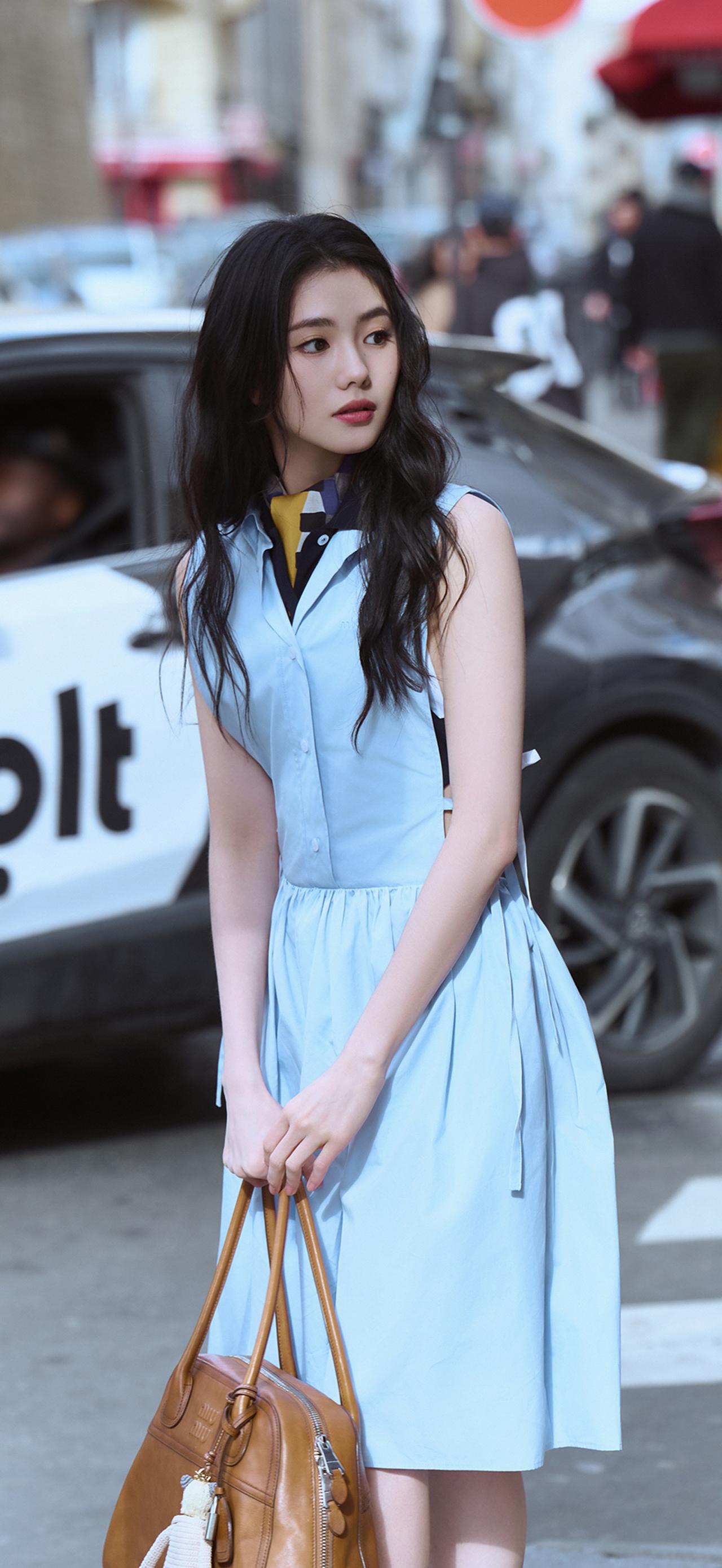 美女壁纸~陈都灵,雾青色纱裙缀满星子碎钻,像把春日林间的月光与晚风都缝进衣袂,一