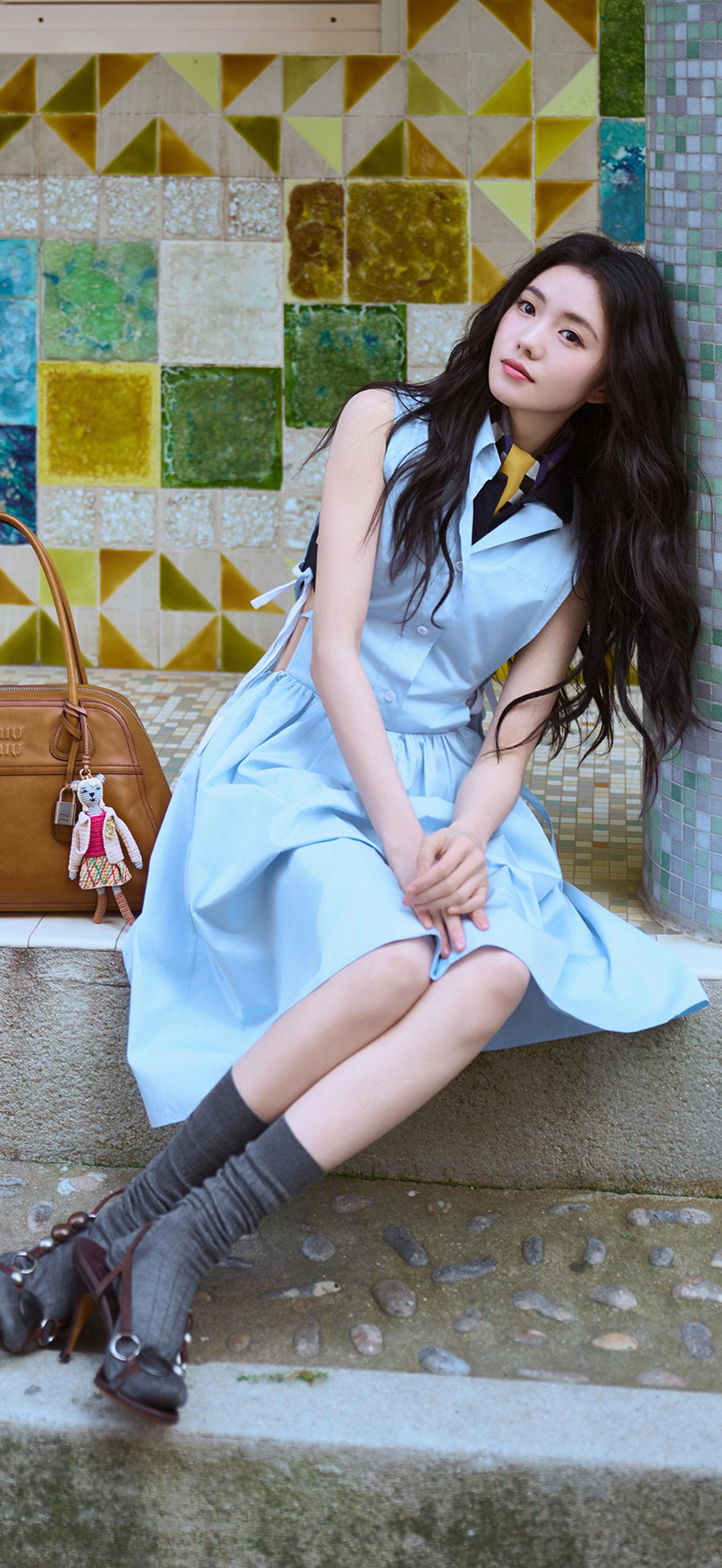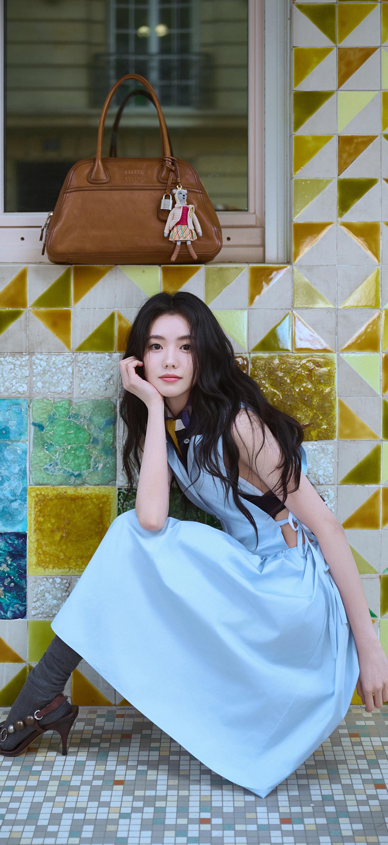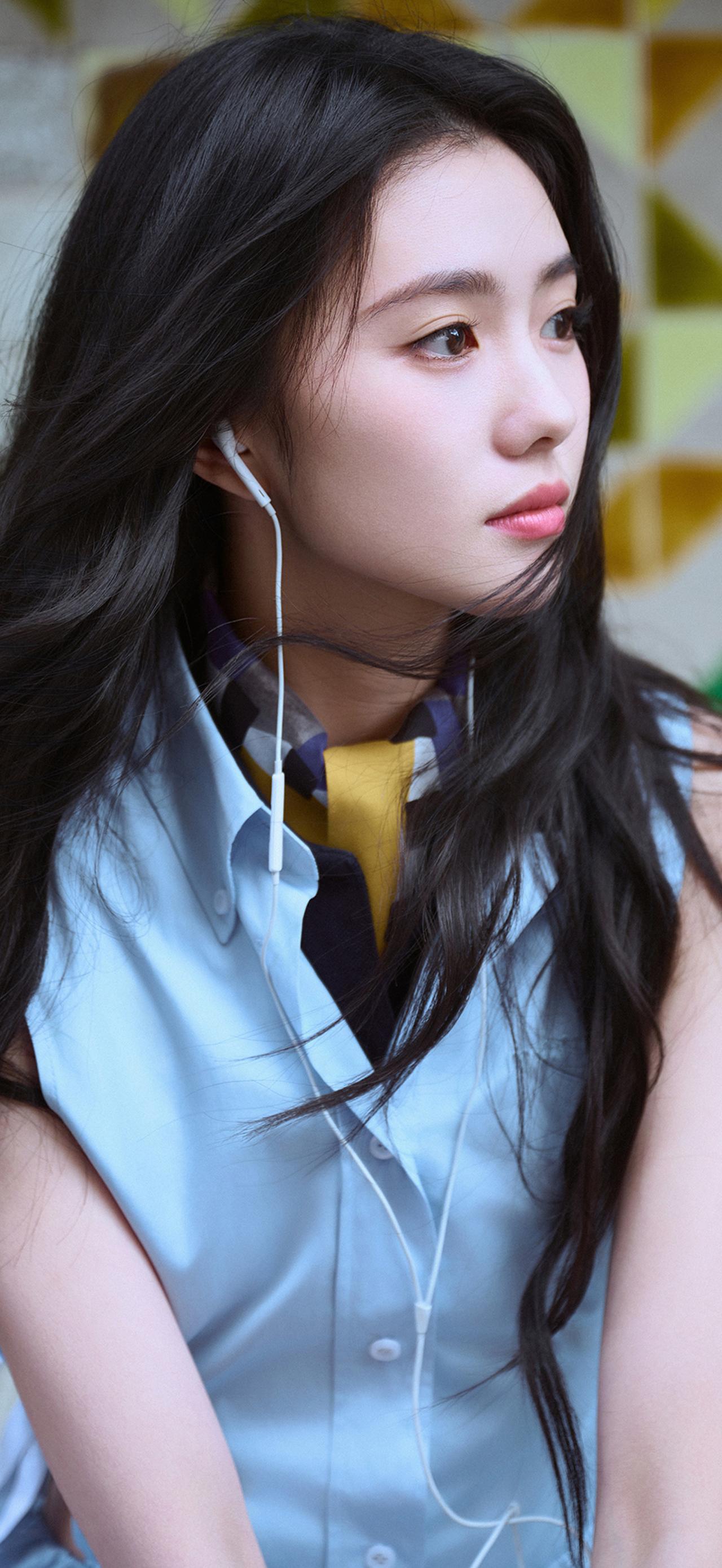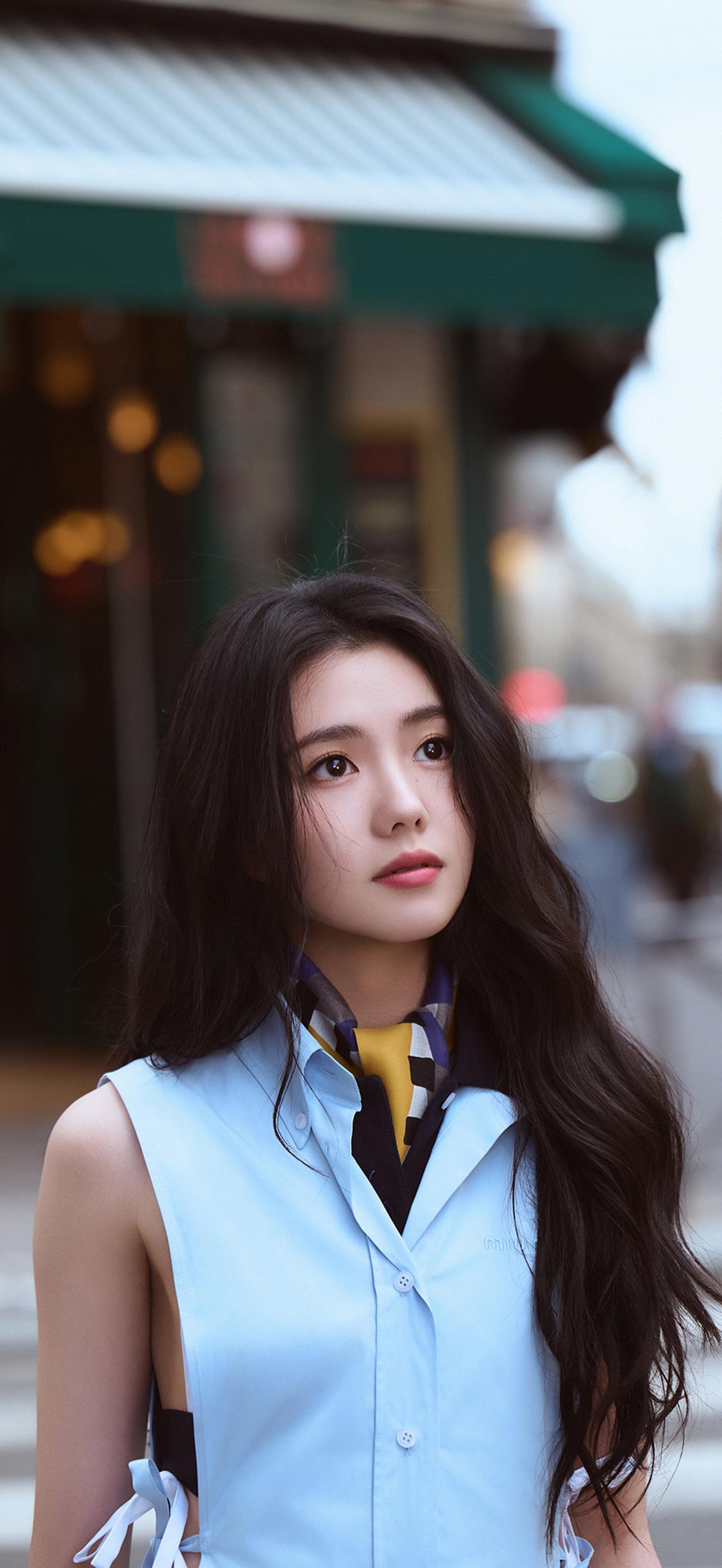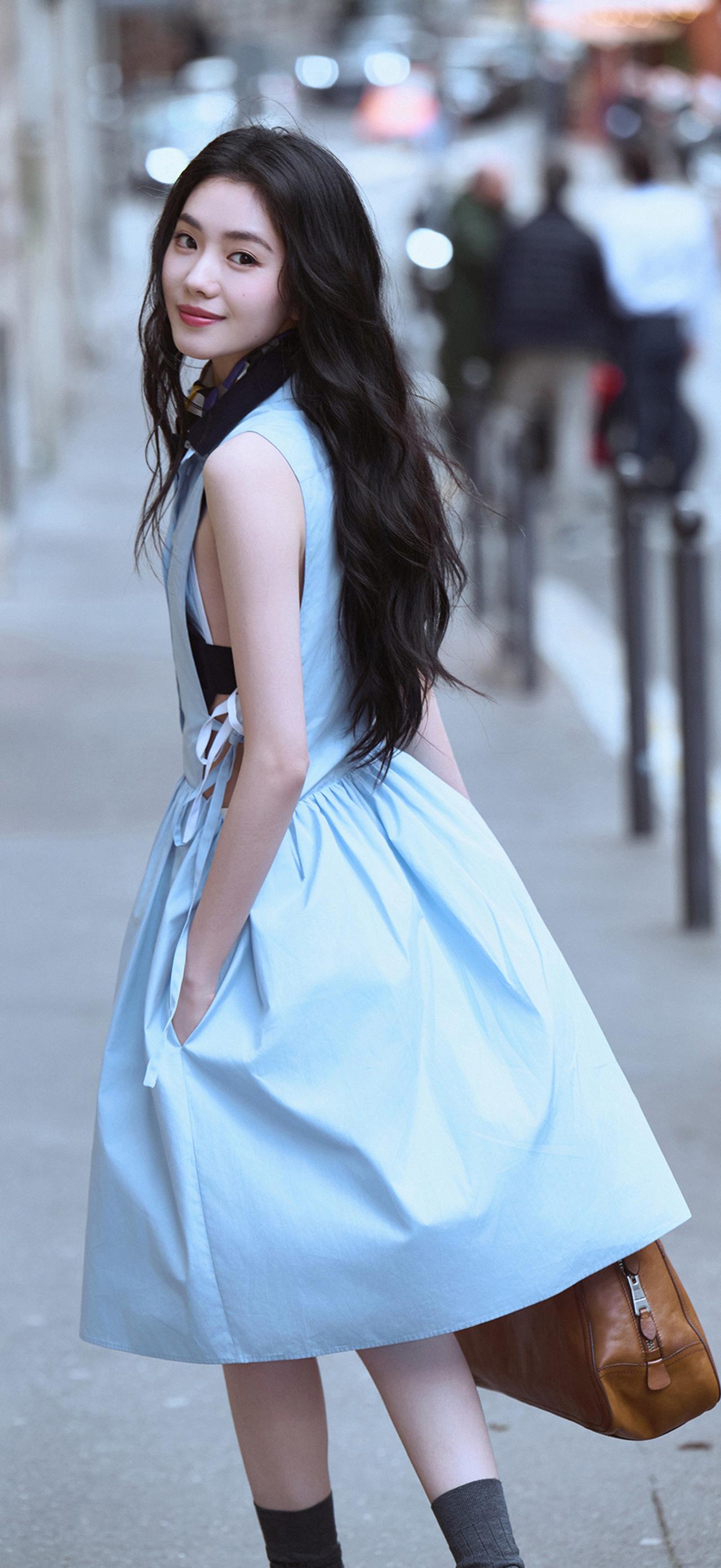 美女壁纸~陈都灵,雾青色纱裙缀满星子碎钻,像把春日林间的月光与晚风都缝进衣袂,一