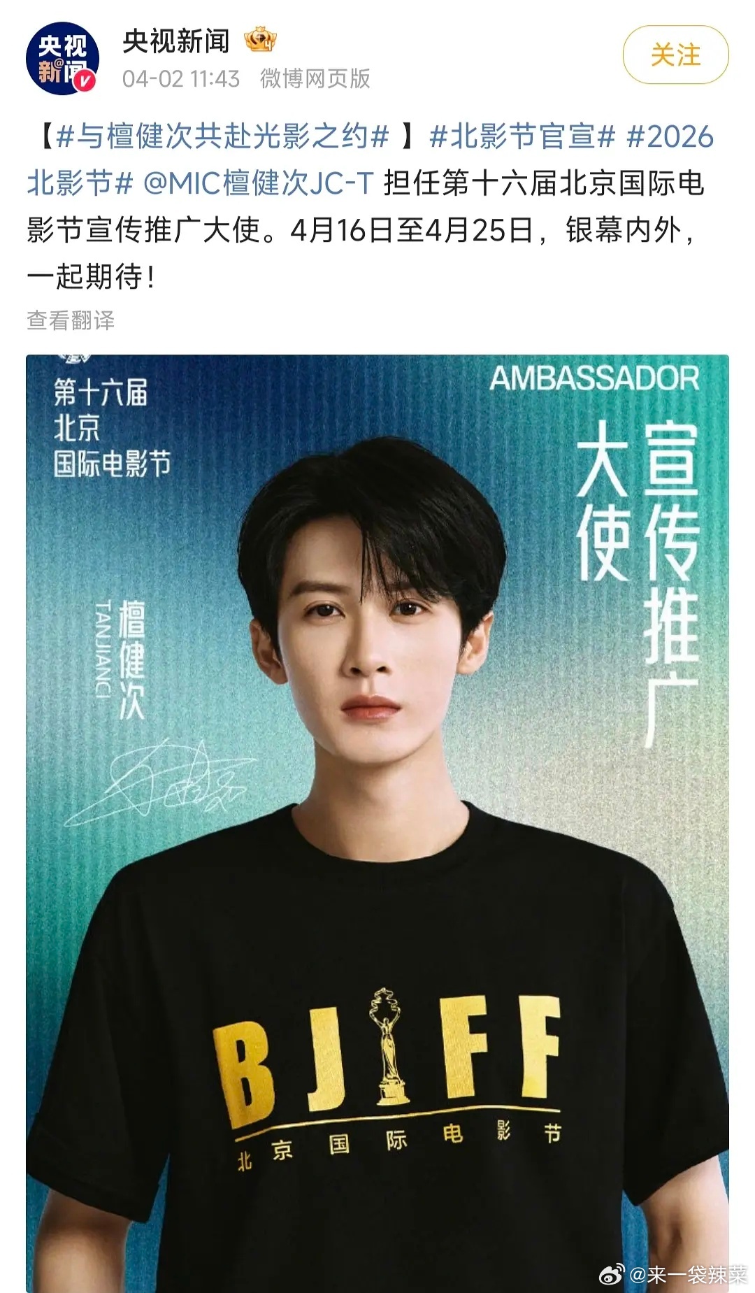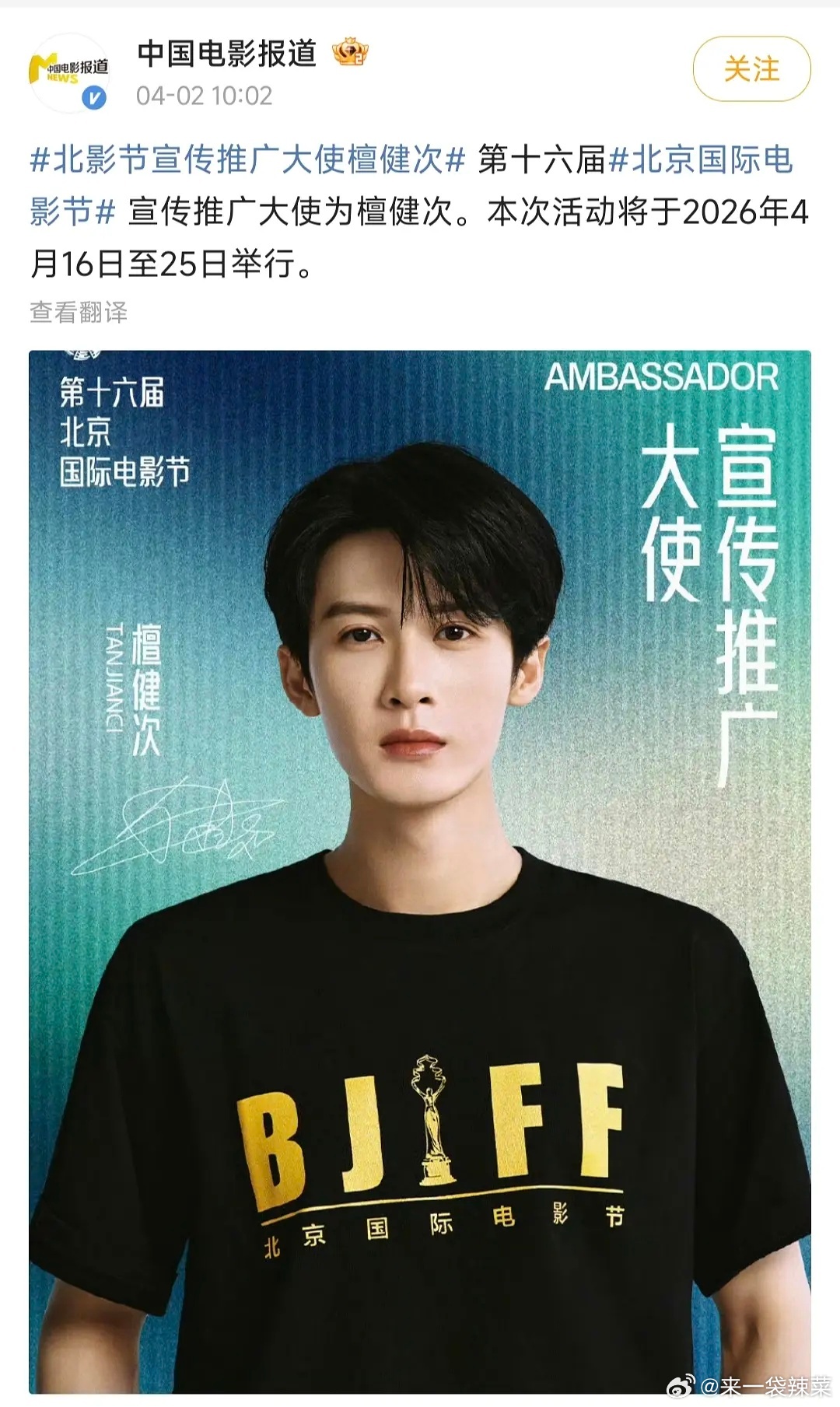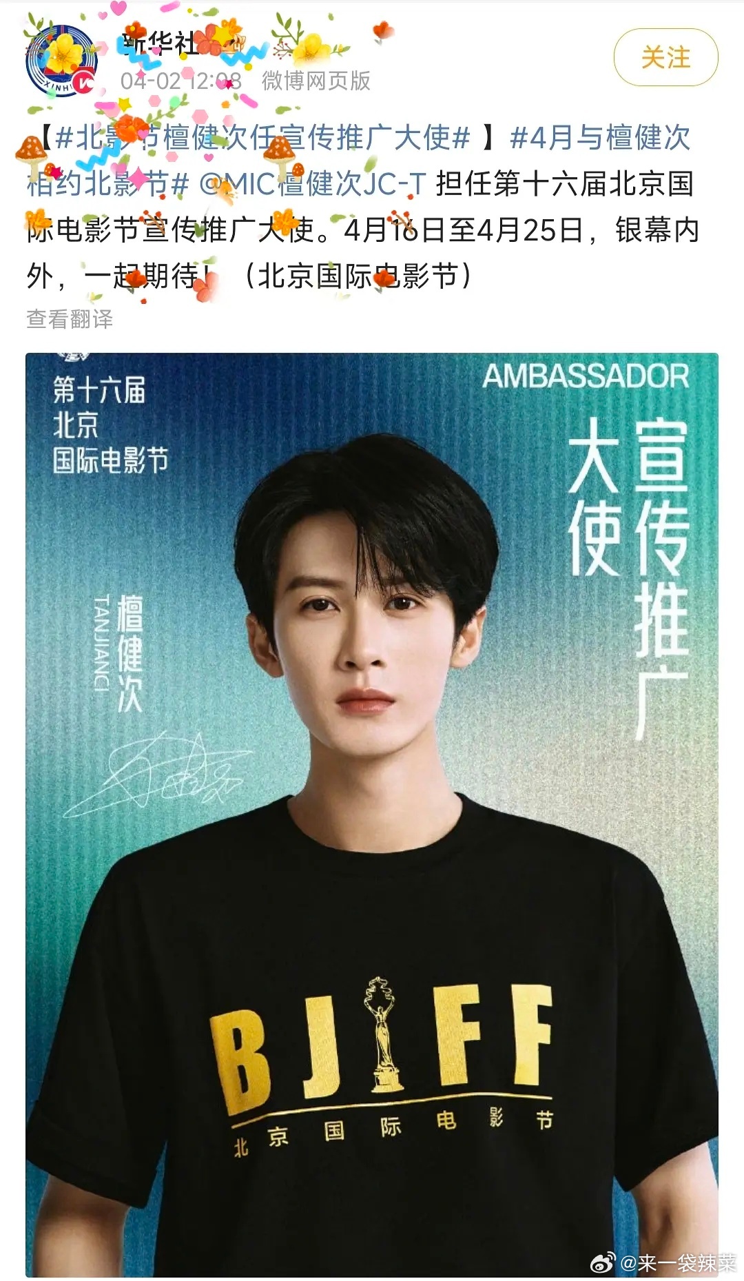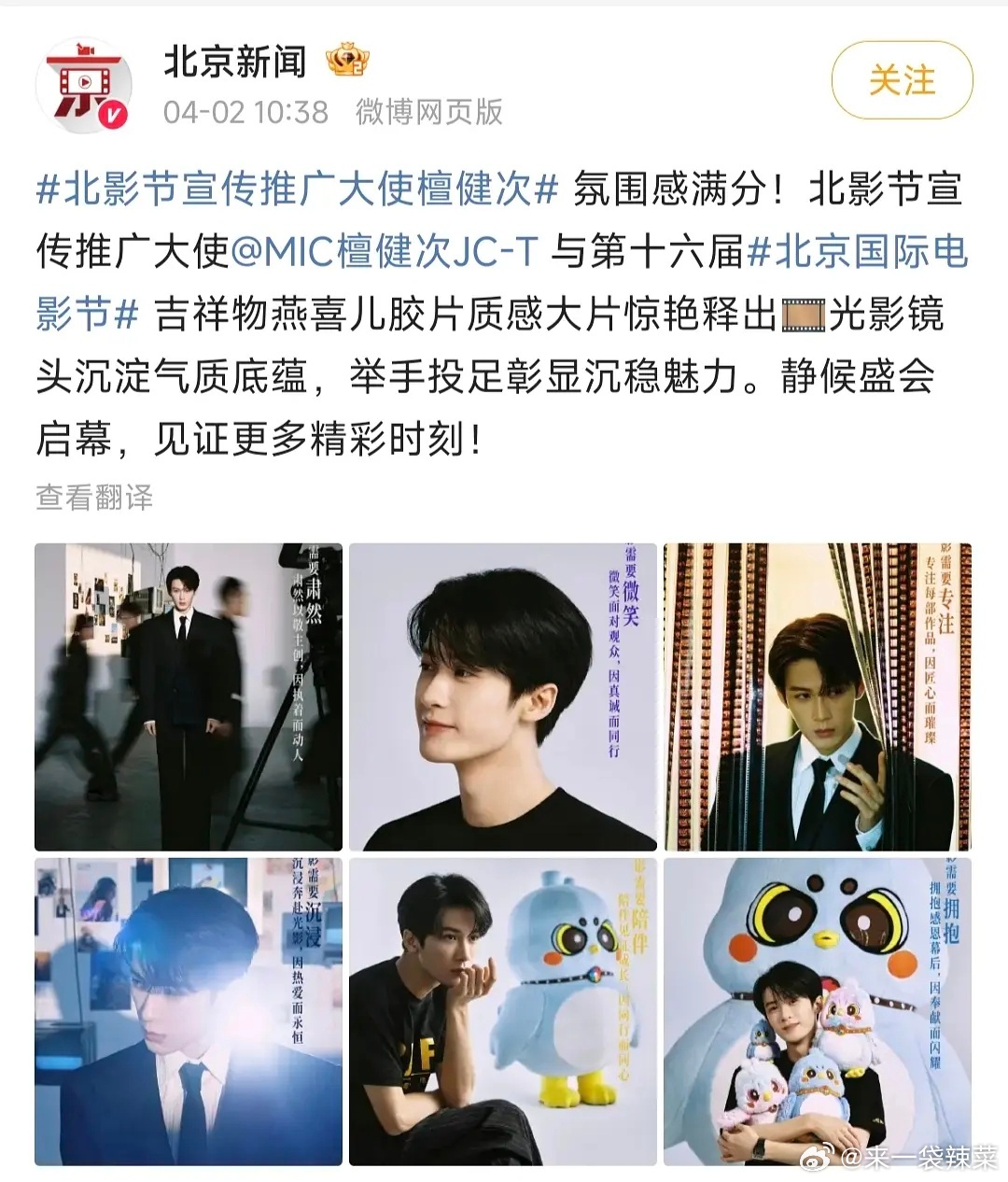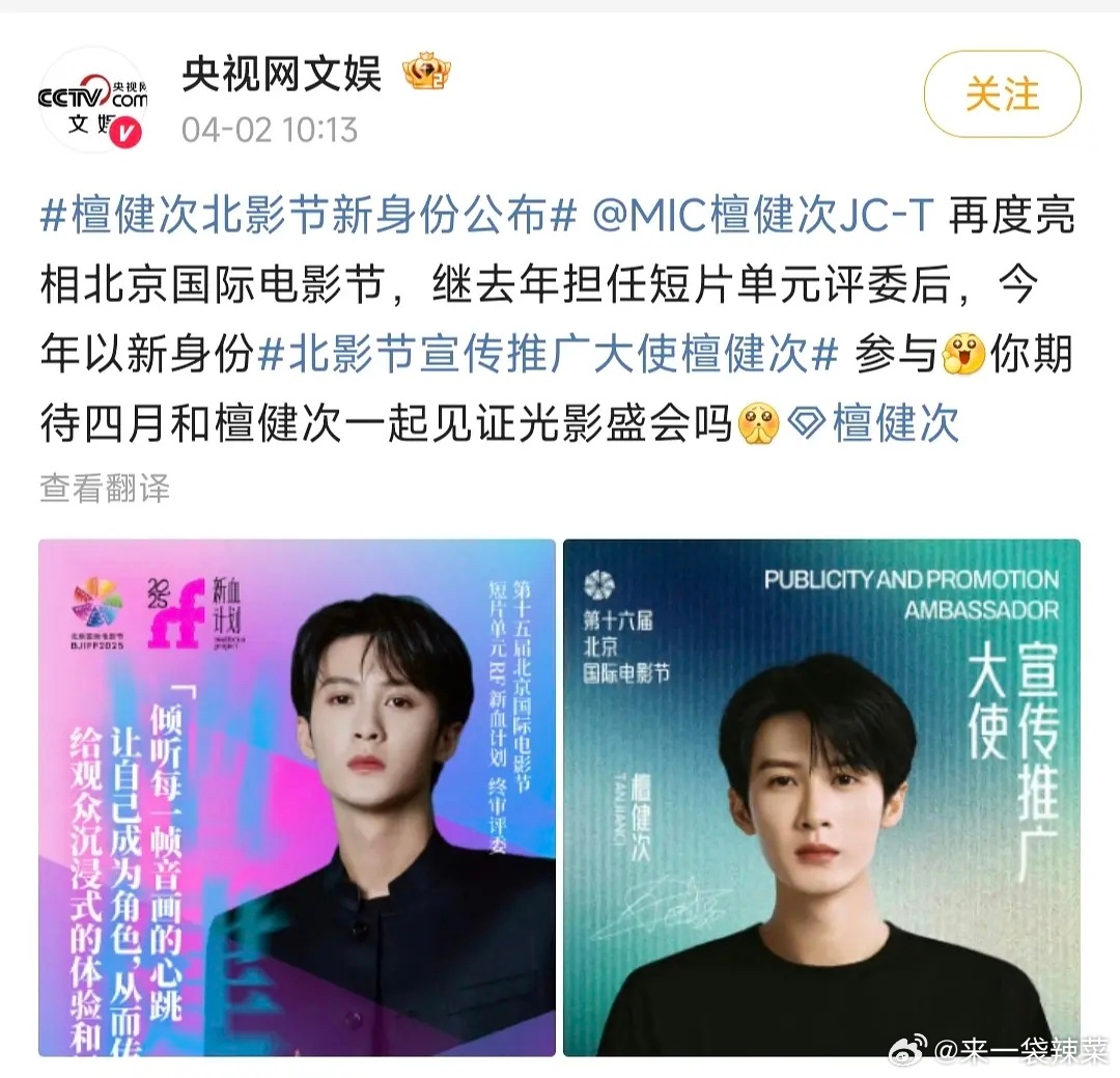 檀健次解锁北影节宣传推广大使,好有排面