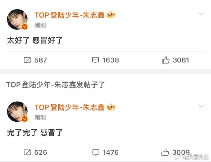 朱志鑫感冒好的好快朱志鑫上一秒感冒下一秒好了 朱志鑫感冒好的好快,有1分钟吗