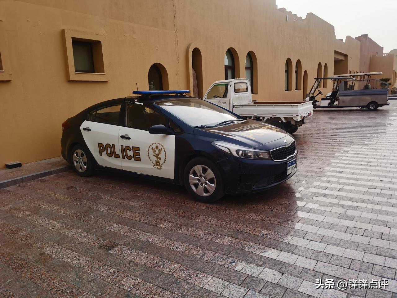 这是埃及的警车,很脏就算了,车头油漆都刮花了也没修理,说明平时维护费很紧张,或者说根本没有。