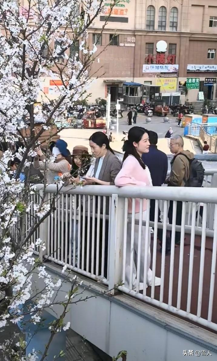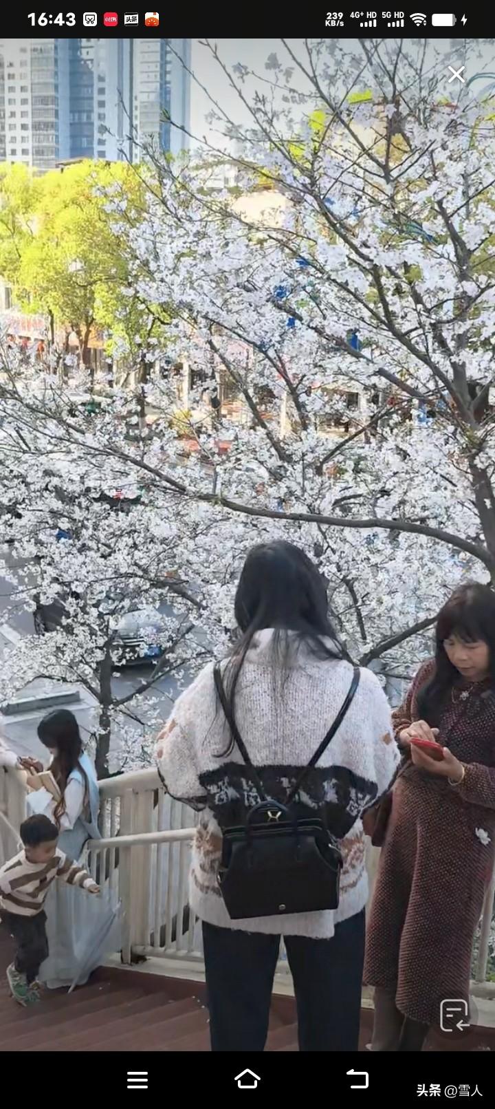 枝头的樱花层层叠叠,粉白相间,风一吹,花瓣簌簌飘落,下起温柔的樱花雨,落在肩头、跑道上,满是春日的诗意。路边早已挤满了前来打卡的人,大家都精心打扮着,有人穿着清新的连衣裙、简约的休闲装,也有人换上精致的汉服,各色衣衫在樱花的映衬下格外好看。
