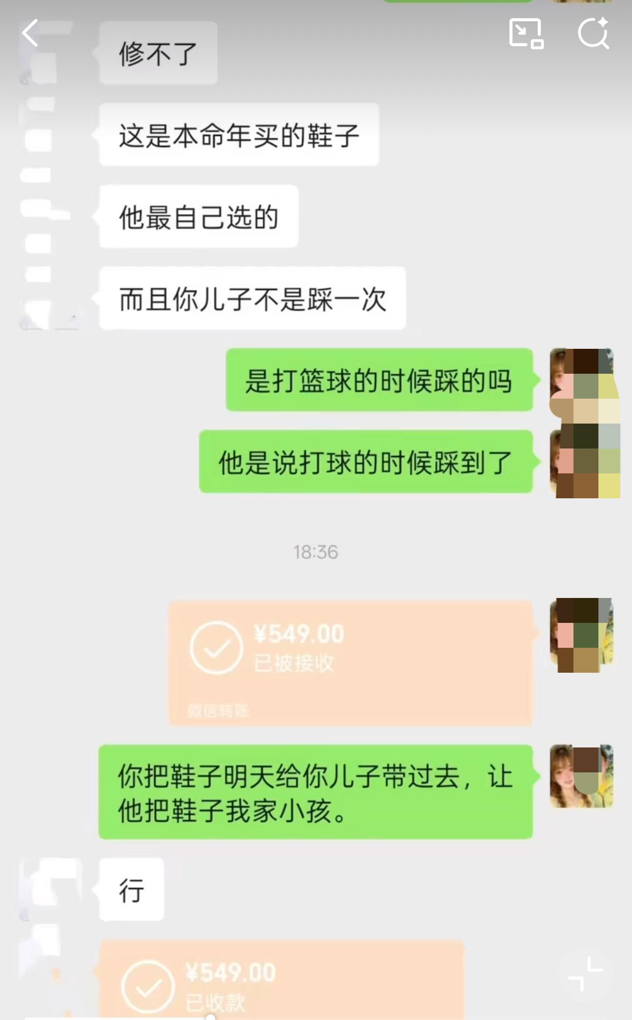 近日,浙江一位家长分享,自己的孩子在和同学打篮球,不小心踩到了同学的球鞋,结果同学的家长微信联系她,说球鞋碳板踩坏了,要求她赔偿一双新的! 这位家长没多说什么,赔了对方549元,并让对方把球鞋带去学校交给自己孩子带回来。 之后这位家长发了个朋友圈大概意思说,孩子踩到同学鞋子,让她钱少了500多。 结果被对方看到,又在班级群里质问她为什么要发朋友圈… 之后孩子把球鞋带回来之后,她发视频做了个实验,让孩子使劲踩这双鞋子,但也没见碳板损坏… 打篮球别说踩到鞋子,有些磕磕碰碰都很正常,这么搞以后应该不会有孩子再跟她家孩子玩了吧…[捂脸]
