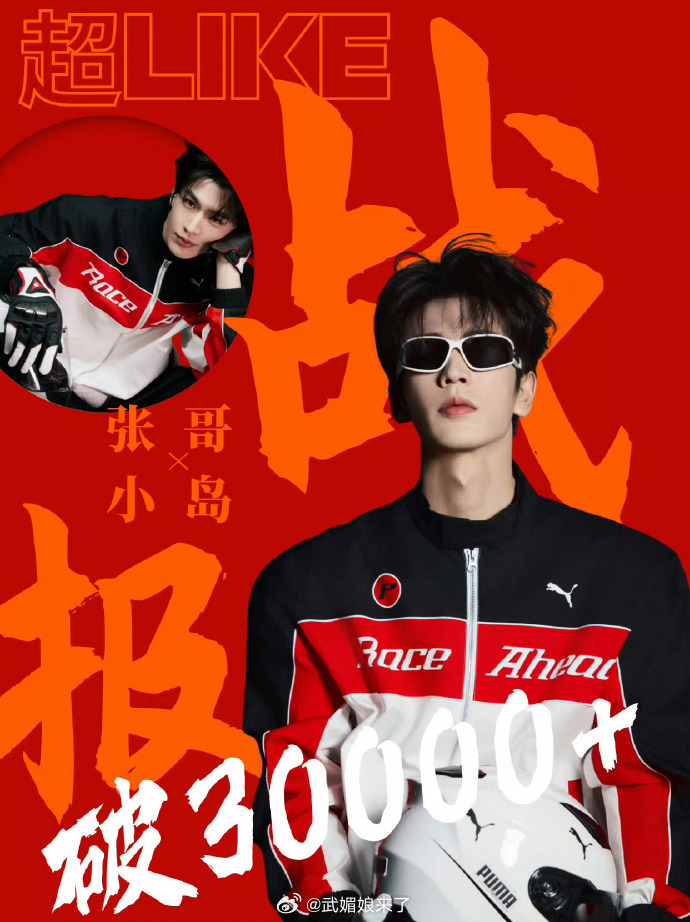 恭喜张凌赫超Like破三万,已经进入95生前三,《逐玉》有效播剧