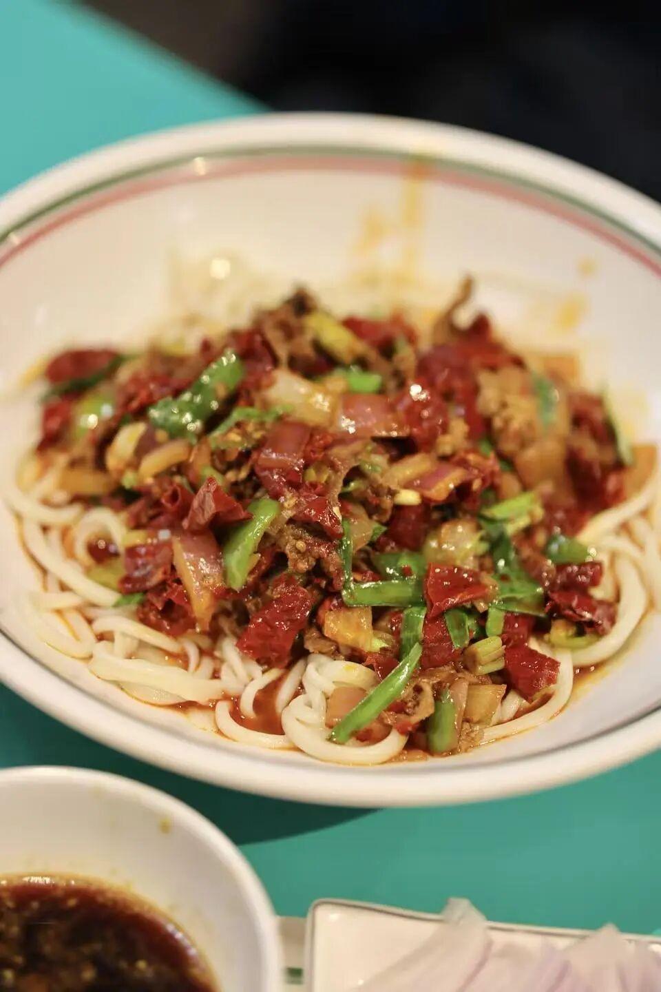 面弹牙,调味舒服不油腻,牛肉嫩有嚼劲,是扎实的西北风味。直接一盘端,方便。遗憾辣皮子偏薄,少了厚墩墩的口感,但整体份量味道在线。