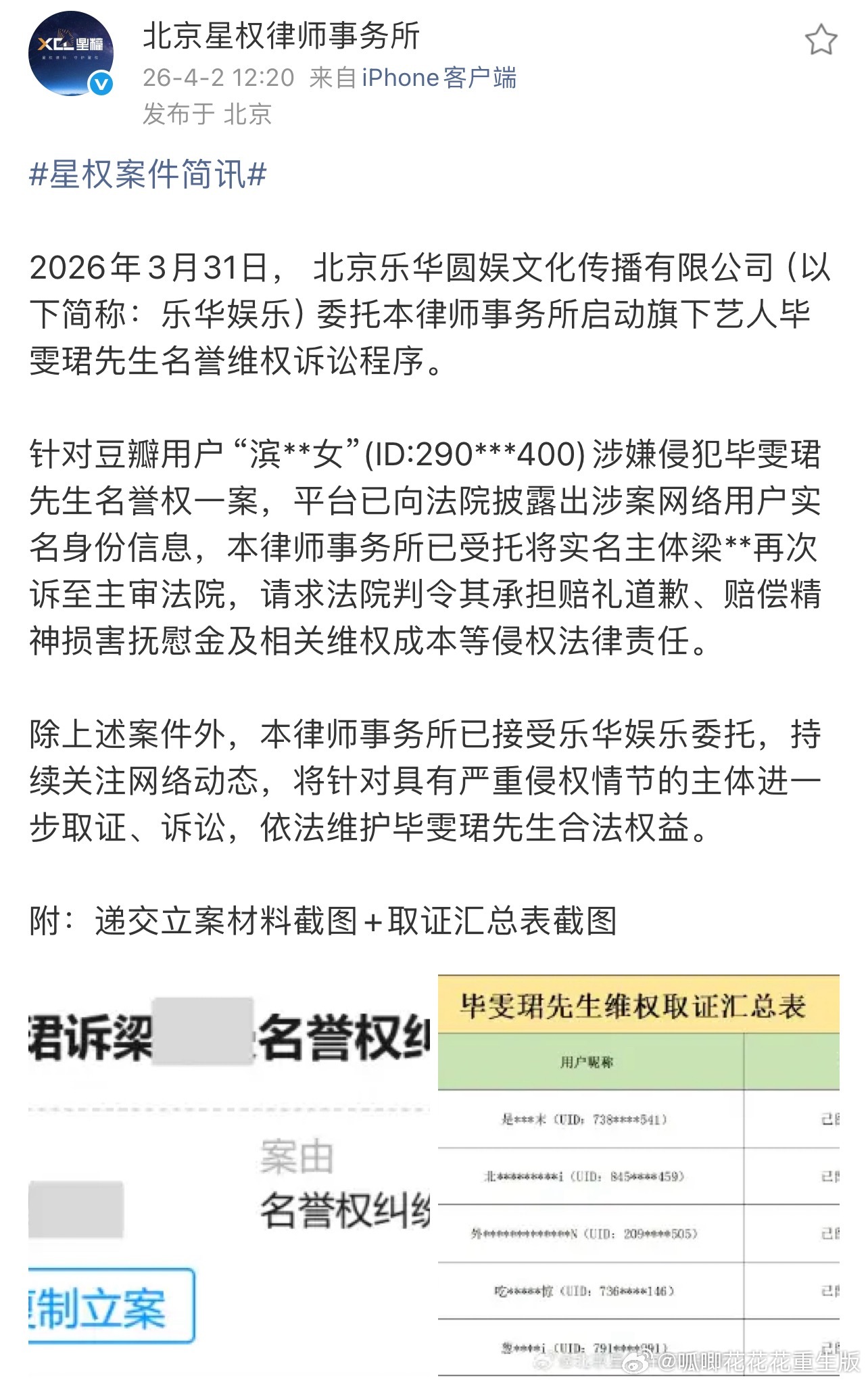 毕雯珺发布告嘿进展,网络不是法外之地,支持毕雯珺维权!!!