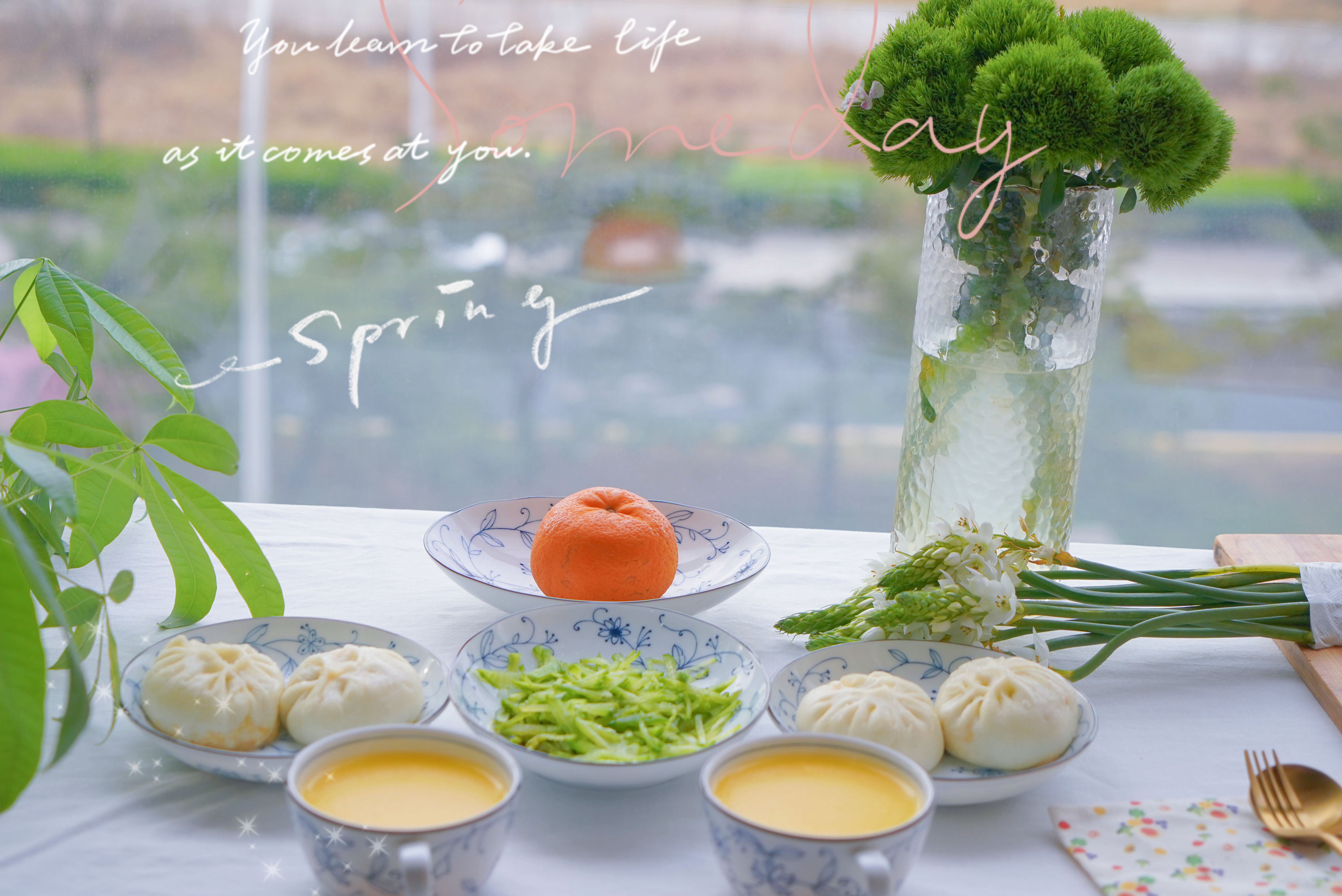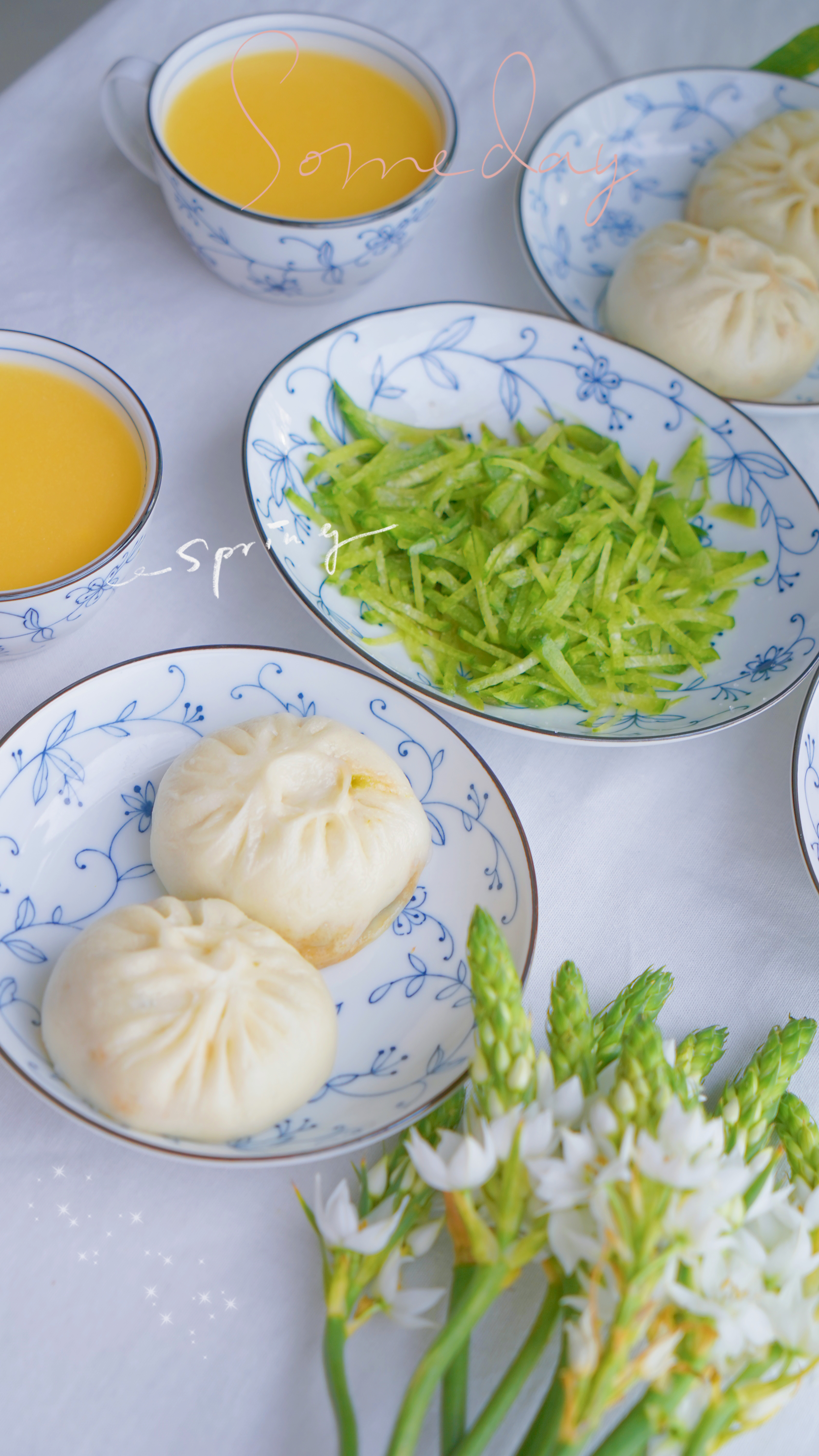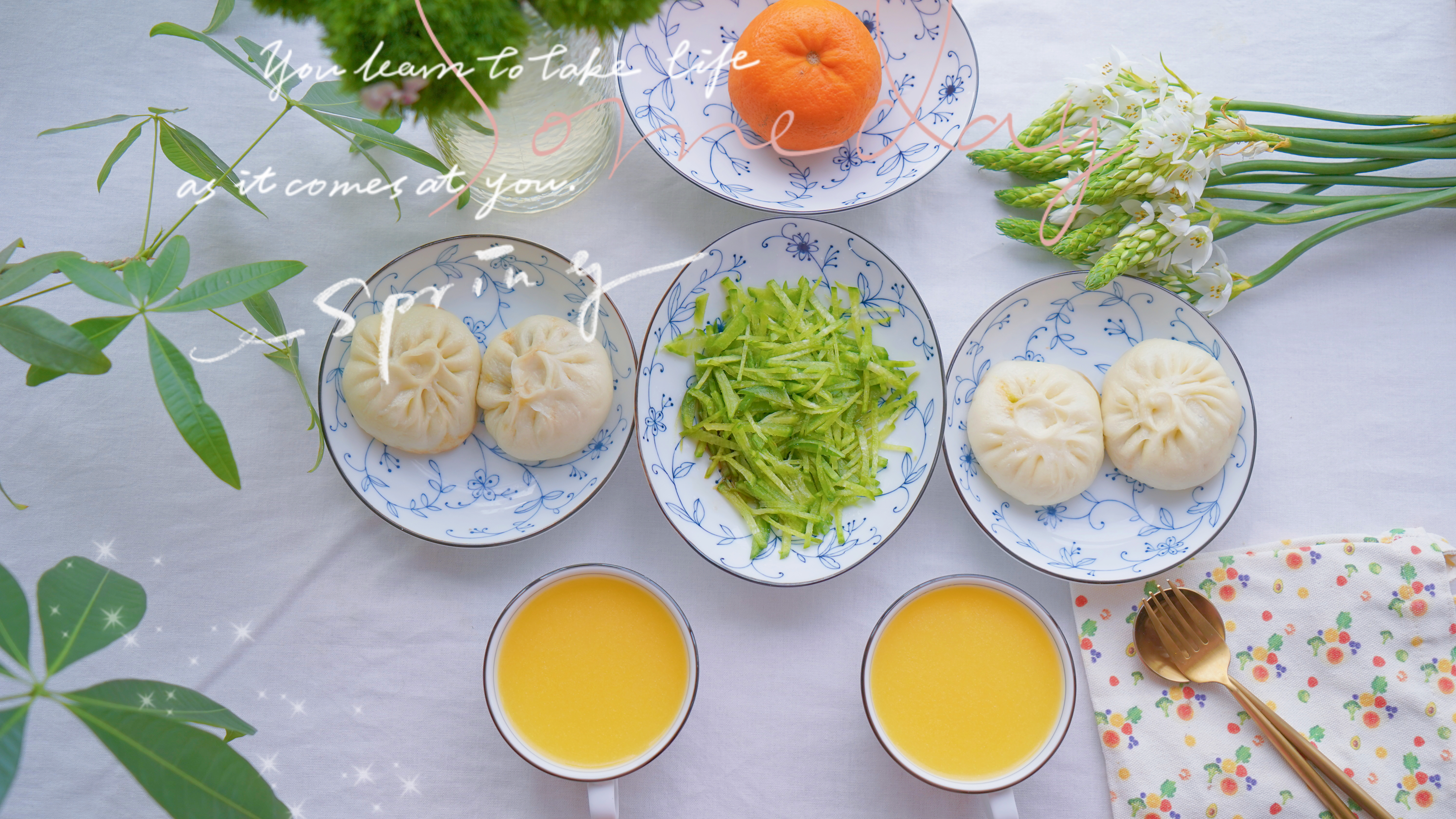 暄软的肉包吸饱了韭菜的香,脆爽的萝卜丝中和了油腻,两杯温热的玉米汁,是春天独有的甜。